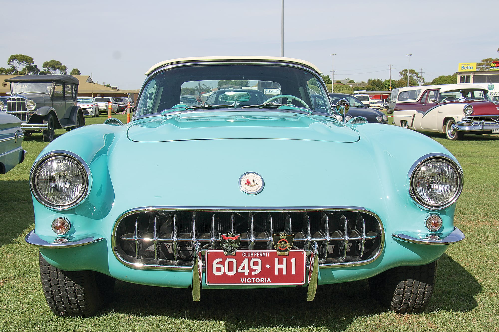 Valiant Charger, 1939 Wolseley, EJ Holden station wagon, WW 2 Willys L134, Chevrolet Corvette, SL/R Torana 500 and a 1947 Mercury Eight.