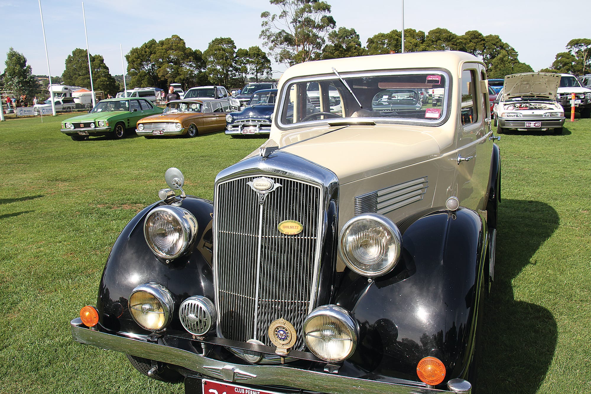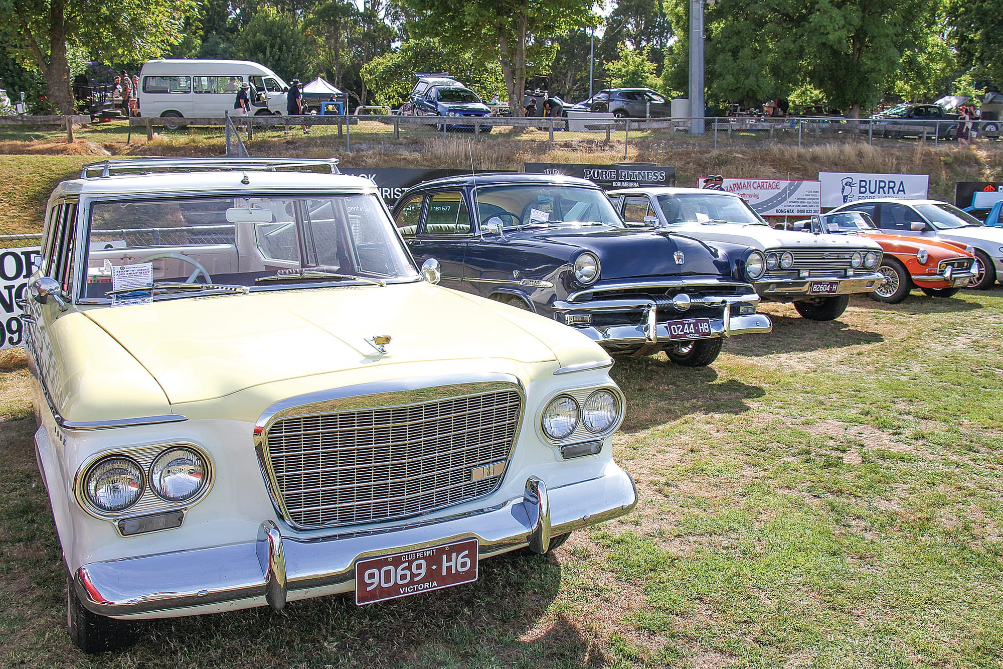 The vintage and classic car display included a 1930 Bentley, Datsun 1500 ute, 1950 Harley-Davidson, 60’s era VW beach buggy, 1920s Rugby tourer, restored street rod, 1930s Ford Mainline, VK