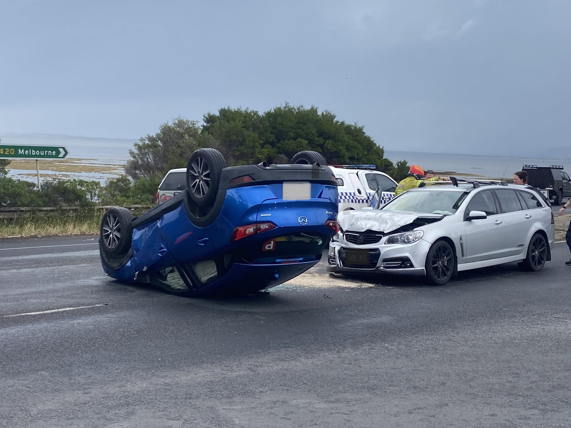A TWO-car collision at the intersection of Phillip Island Road and Bergin Grove at the middle entrance to San Remo is causing significant traffic delays. The driver of one of the cars which has flipped onto its roof was trapped inside the car until...