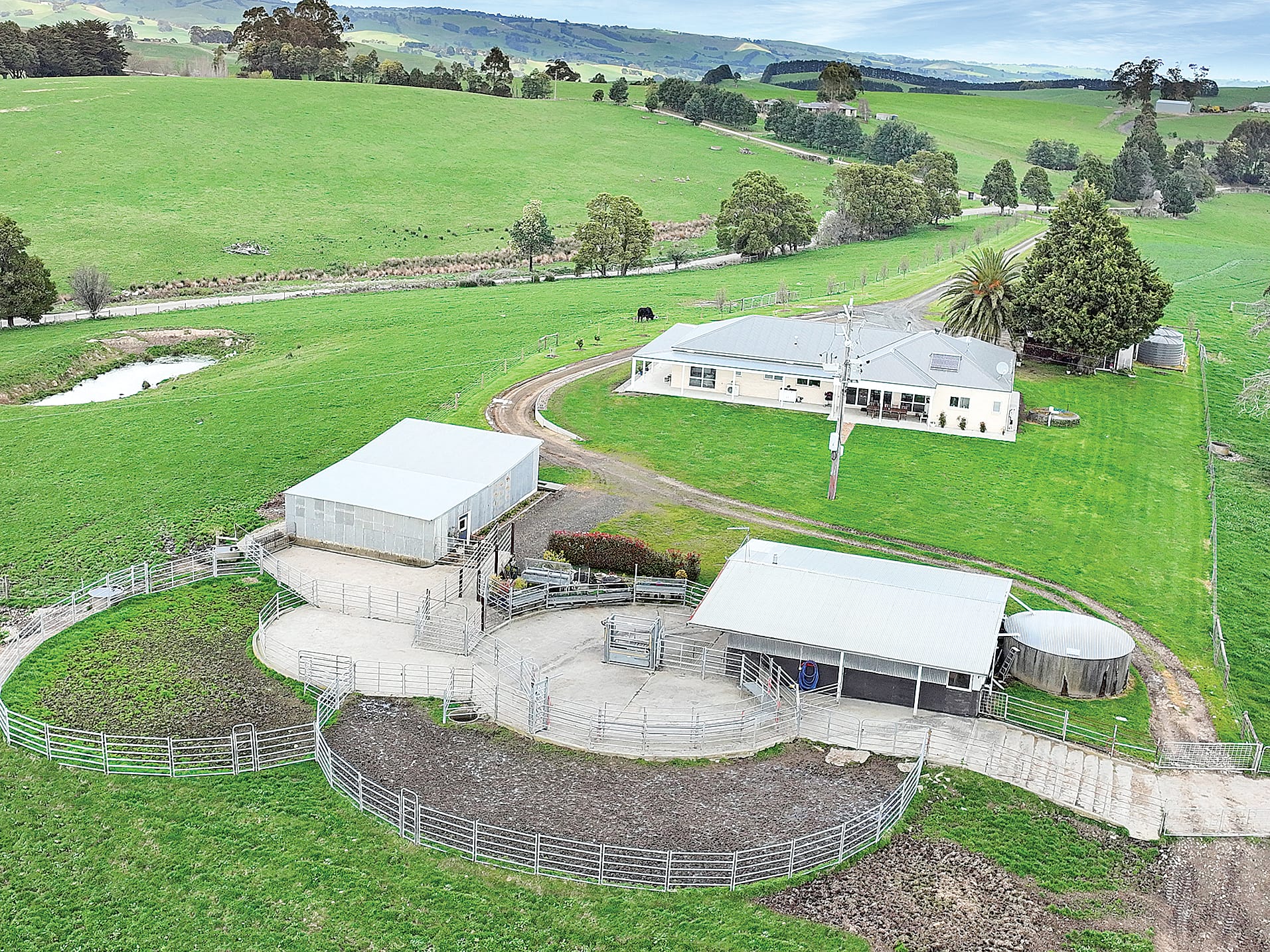 The gently undulating topography complements the serene surroundings, and a converted disused dairy serves as a studio with a spacious workshop. Stockyards, a crash loading race, and drench run offer convenience for managing the livestock.