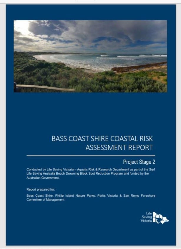 But it’s not the first time those councillors have heard about the ‘Bass Coast Shire Coastal Risk Assessment Report 2019’ (Project Stage 2), conducted by Surf Lifesaving Victoria for local foreshore management agencies Bass Coast Shire, Phillip Island Nature Parks, Parks Victoria and San Remo Foreshore Committee of Management.