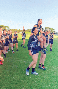 With a comfortable 4.3-37 to 0.2-2 lead at half time and happy with the team’s improvement in spreading and relieving congestion, coach Bianca Hellmuth-Pask set a challenge for the team in the second half by mixing around the positions.