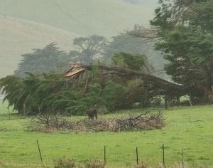 “There are two trees down across our track and more trees down across the road. We won’t be going anywhere today,” Mrs Diggerman said.