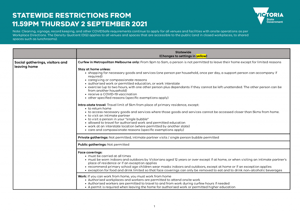 And from 11.59pm tomorrow night (Thursday, September 2). playgrounds will reopen, and in-home care can resume for school-aged children if both parents are authorised workers.