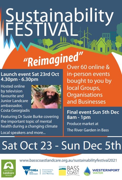 For more information about the Sustainability Festival and to view the event program, head to basscoastlandcare.org.au/sustainabilityfestival2021. It is worth continuously checking back as more events are loaded onto the program throughout the six weeks.