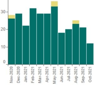 Interestingly enough, the latest ABS figures show a marked drop off in the number of residential approvals in South Gippsland, across the 12 months from November 2020 to October 2021 with approvals typically running at 30 houses-a-month between November and May but then falling below 20-a-month on average from June to October 2021 as follows: June 18, July 20, August 23 houses +2 townhouses, September 21 and October 12 residential approvals.