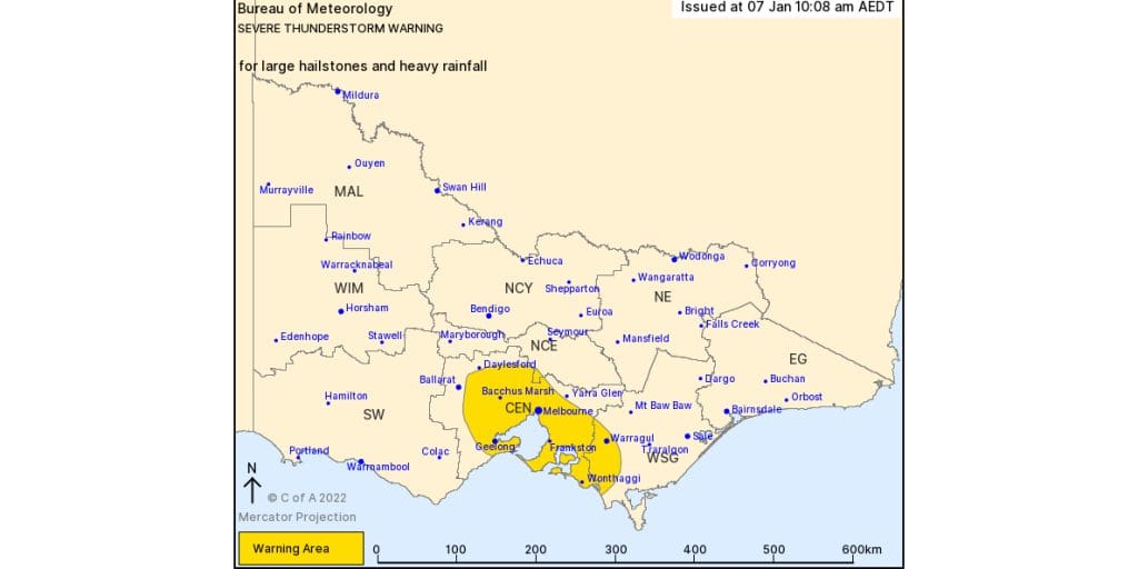 If severe thunderstorms develop in the Melbourne Area, a more detailed Severe Thunderstorm Warning will be issued to people in this area.