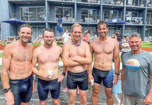 “It was pretty good out there today, not too choppy, the tide was with us and the run was a bit shorter this year (4km) and not too hot which was great,” said Rob at the finish line, barely puffing after a handy 21:47 finish.