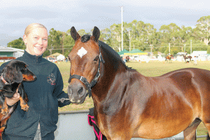 Jen Moss put 15-year-old horse Crystal Gold through her paces in the show jumping.