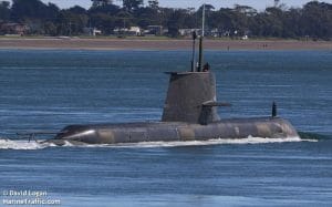 Believed to be a Collins Class submarine, the vessel came into the bay a few weeks ago and it reportedly back to send some personnel to shore.