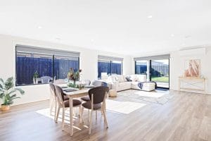 There is a large, sun-filled family living zone adjacent to the modern kitchen with butler’s pantry and 900mm gas cooker.