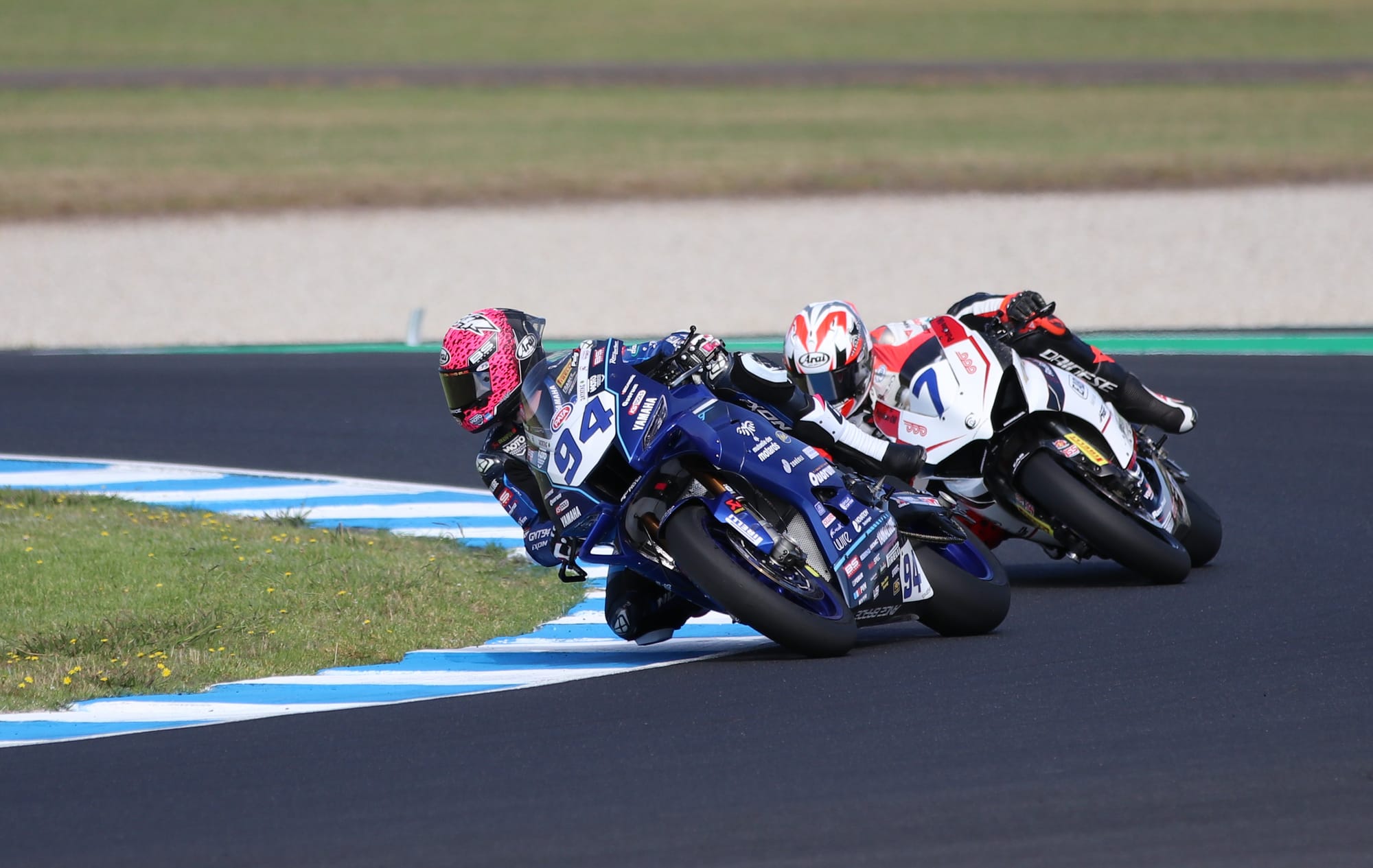 THE action is heating up on day two of the World Superbikes at Phillip Island. This morning, the Australian Supersport 300 riders hit the track for Race 2 (1: Jordy Simpson (SA) 14:47.247, 2: Hudson Thompson (NSW) +0.018, 3: Scott Nicholson (Vic) +0.031), while the Australian Supersport competitors kicked off Race 1 (1: Archie McDonald (NSW) 14:21.619, 2: Jack Mahaffy (VIC) +0.247, 3: Tom Bramich (VIC) +5.553). Meanwhile, Race 1 of the Australian Superbikes has just been won by Victorian rider Josh Waters for McMartin Racing who led the charge on his Ducati 4.404 seconds ahead of Anthony West (QLD) and Mike Jones (QLD) +4.421.