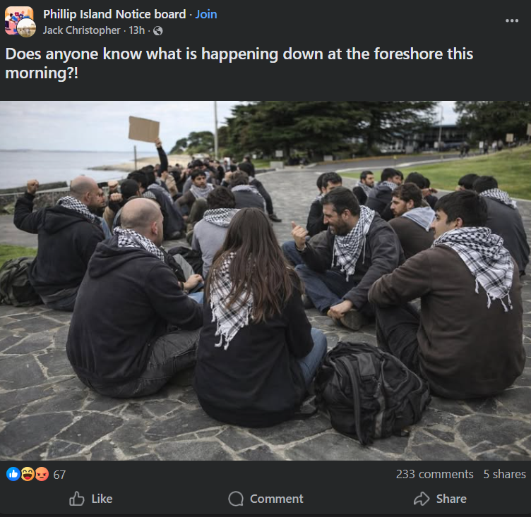 AN AI-generated image of Middle Eastern men on a Phillip Island foreshore sparked a racist pile-on after a social media user posted it to a Facebook group with 35,000 members.
