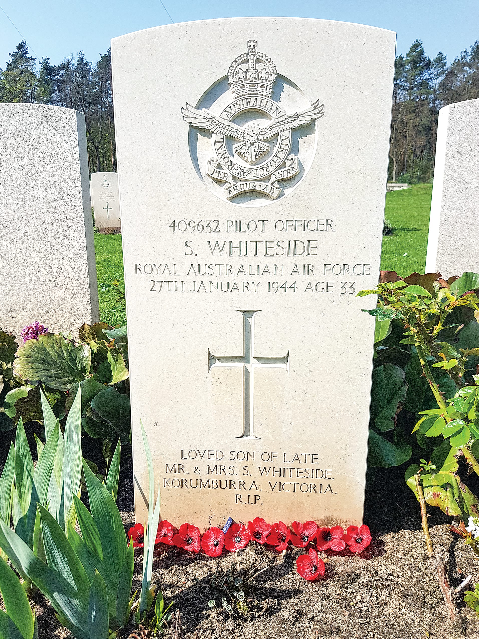 Initially posted as missing it was not until 1951 that the RAAF determined that Whiteside and his crew had been shot down by a German night fighter south-west of Berlin.