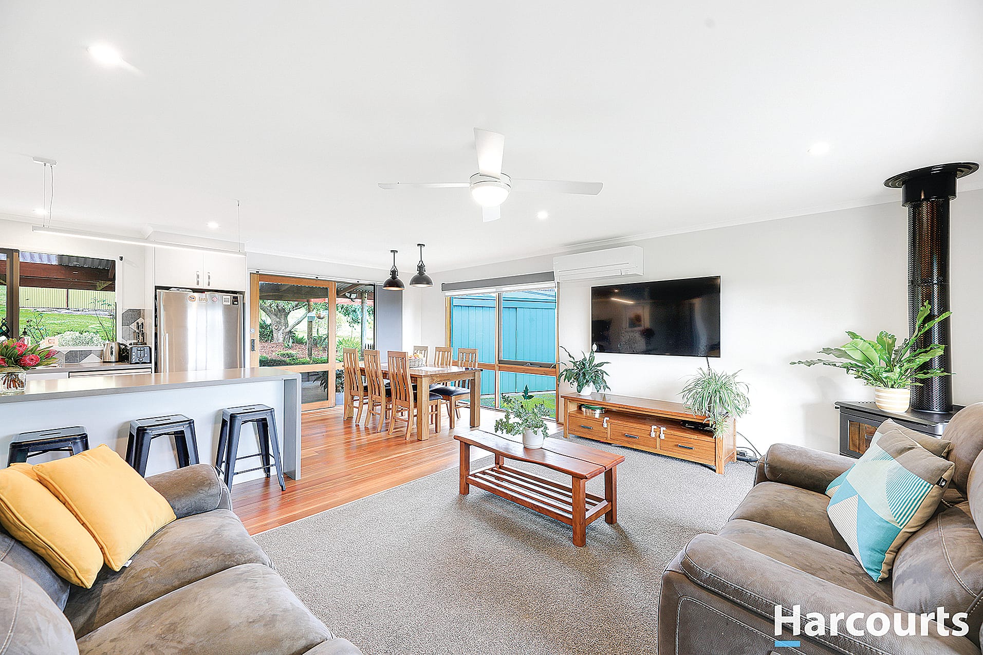 • Open-plan layout seamlessly integrating kitchen, dining, and lounge room.