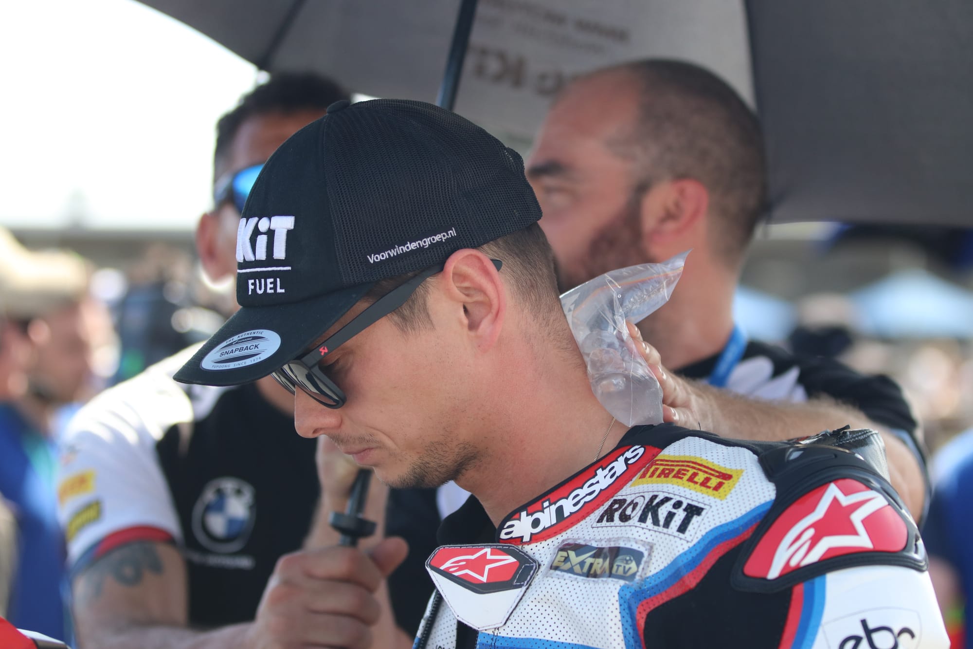 IT WAS a scorcher ahead of the WorldSBK Race 1 this afternoon at 4pm with riders attempting to keep cool in any way they could ahead of the race. From ice on the back of the neck to ice packs under the suit, fans blowing, umbrellas were up and water...