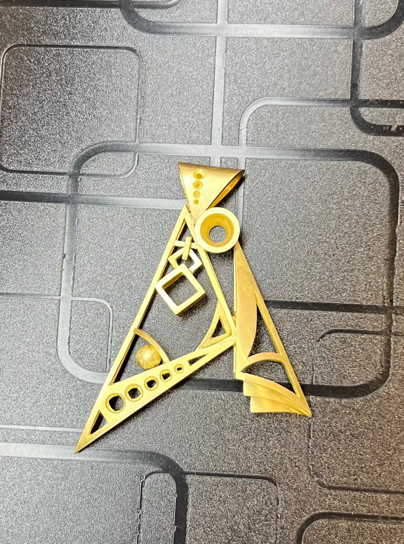 Over three days Lily-Grace designed part of and then put together a three-module pendant piece, created from 18-Karat yellow gold.
