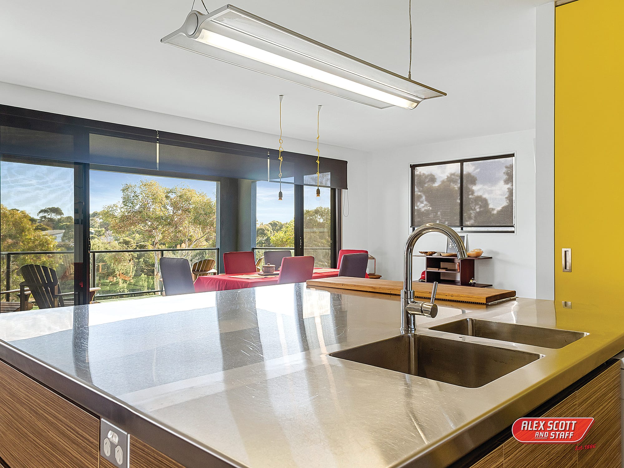 A large open plan with 6 metre stacker doors opens onto a large private undercover balcony with a built-in barbecue area overlooking the picturesque Seagrove wetlands.