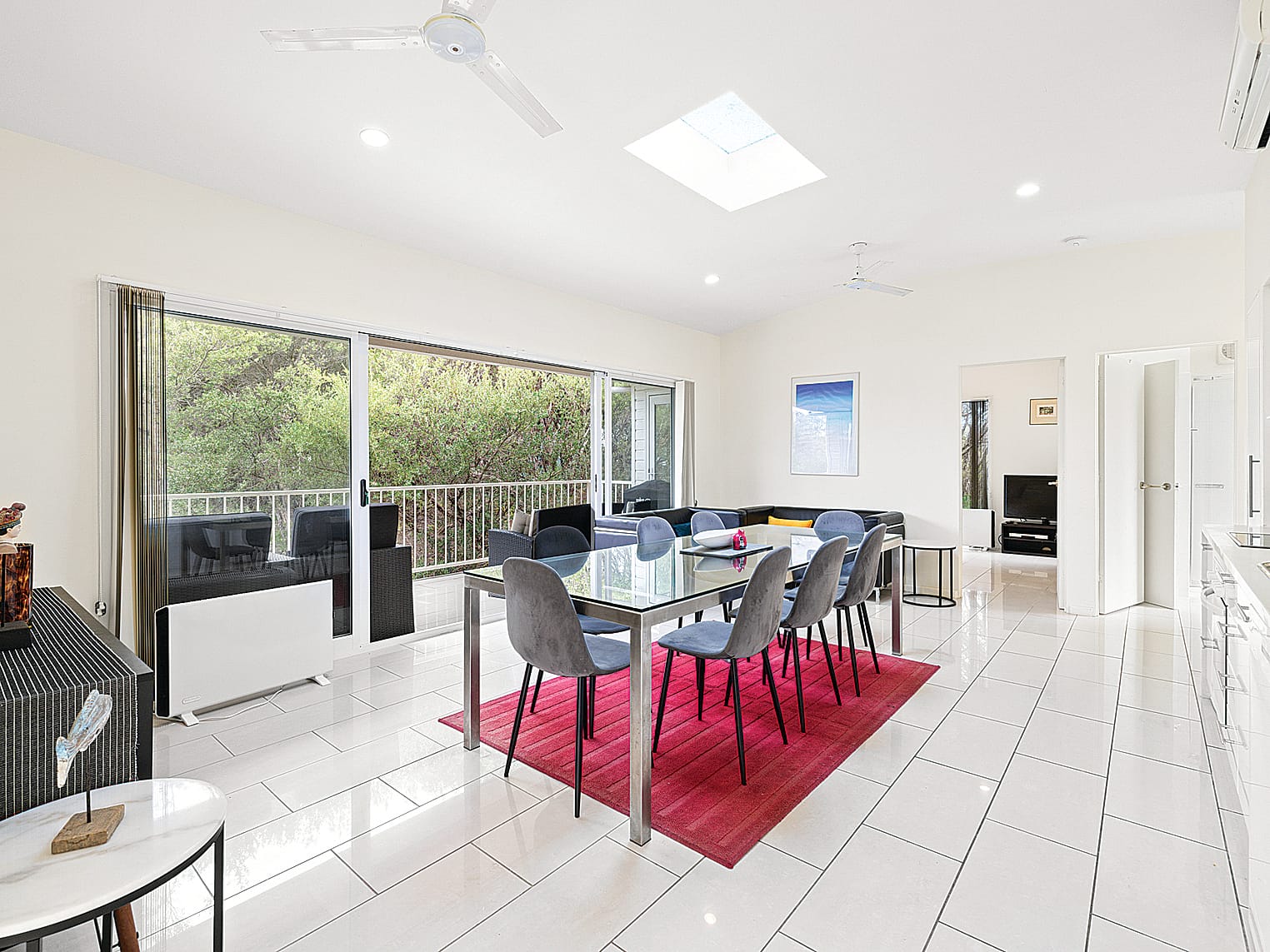 SET on an approximately 493 square metre block just two minutes stroll to the pristine beach, superbly constructed over three levels and offering airy light filled spaces that invite the outdoors in. Inside, the clean lines, sophisticated finishes, and a soft neutral palette create a serene atmosphere. Thoughtfully designed for year-round comfort, the home benefits from an open northerly aspect, with zoned reverse cycle air conditioning and ceiling fans providing climate control in every season.