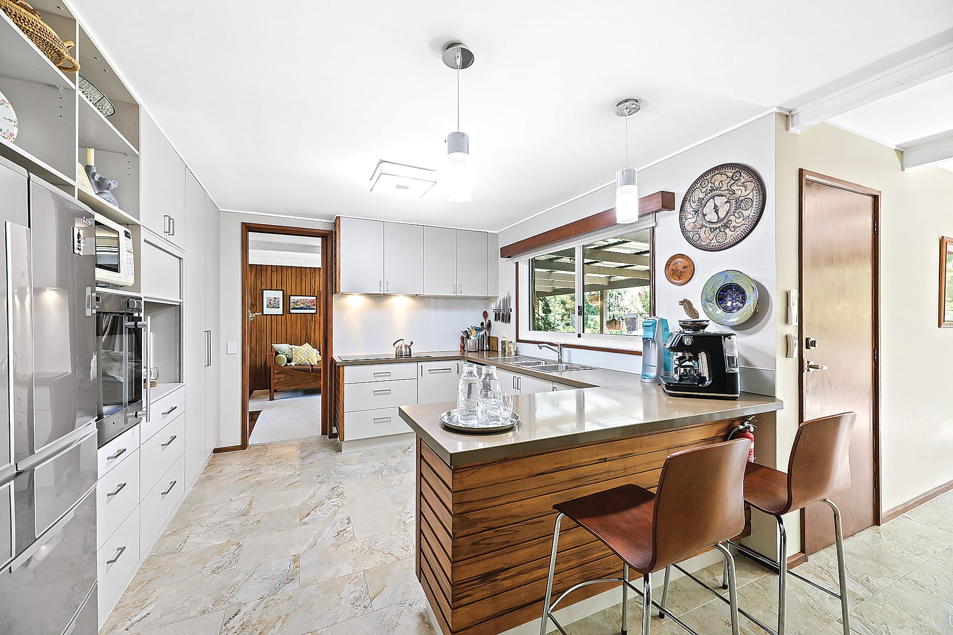 • Recently renovated kitchen, with quality appliances and clever cabinetry featuring German shelving systems