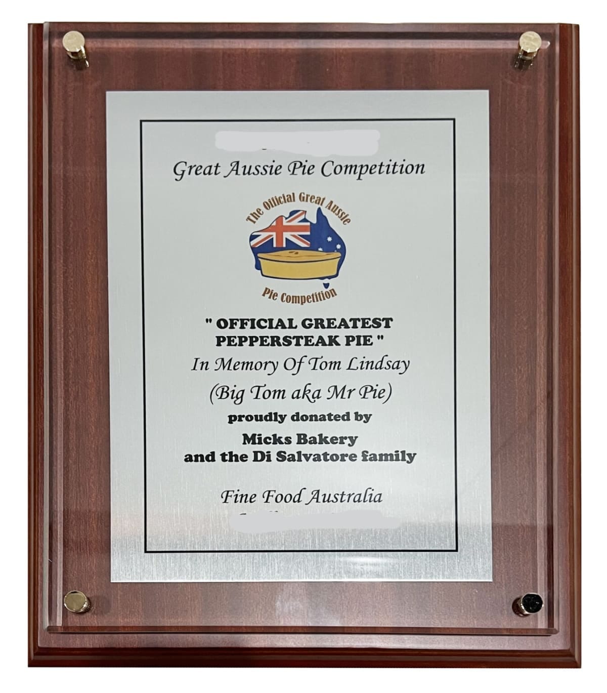 Tom’s favourite pie was Pepper Steak, and he was honoured in 2017 with the creation of the Tom Lindsay Pepper Steak Award.