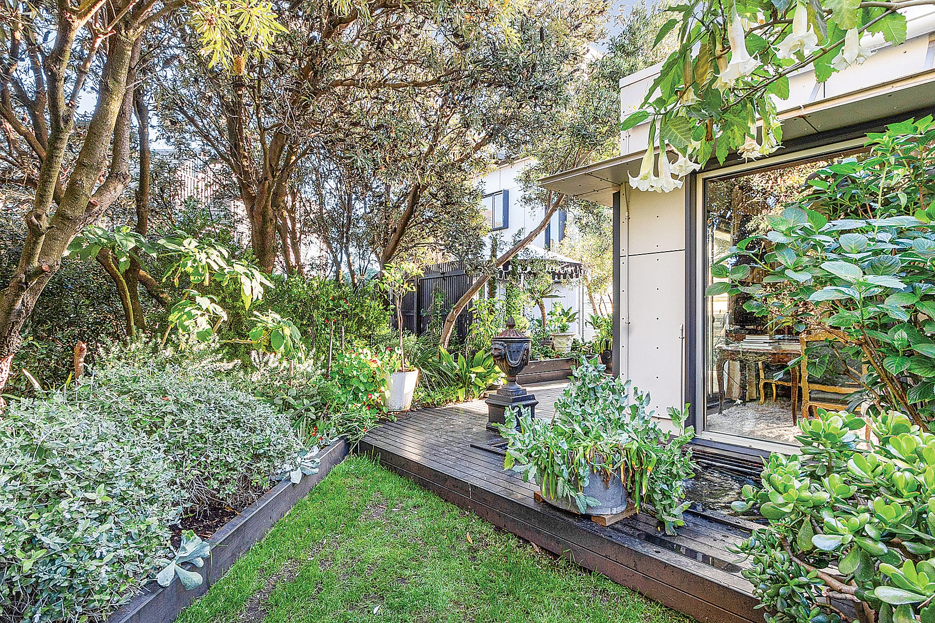 The house sits on a corner allotment, of almost a quarter acre in size, surrounded by a well-established garden.