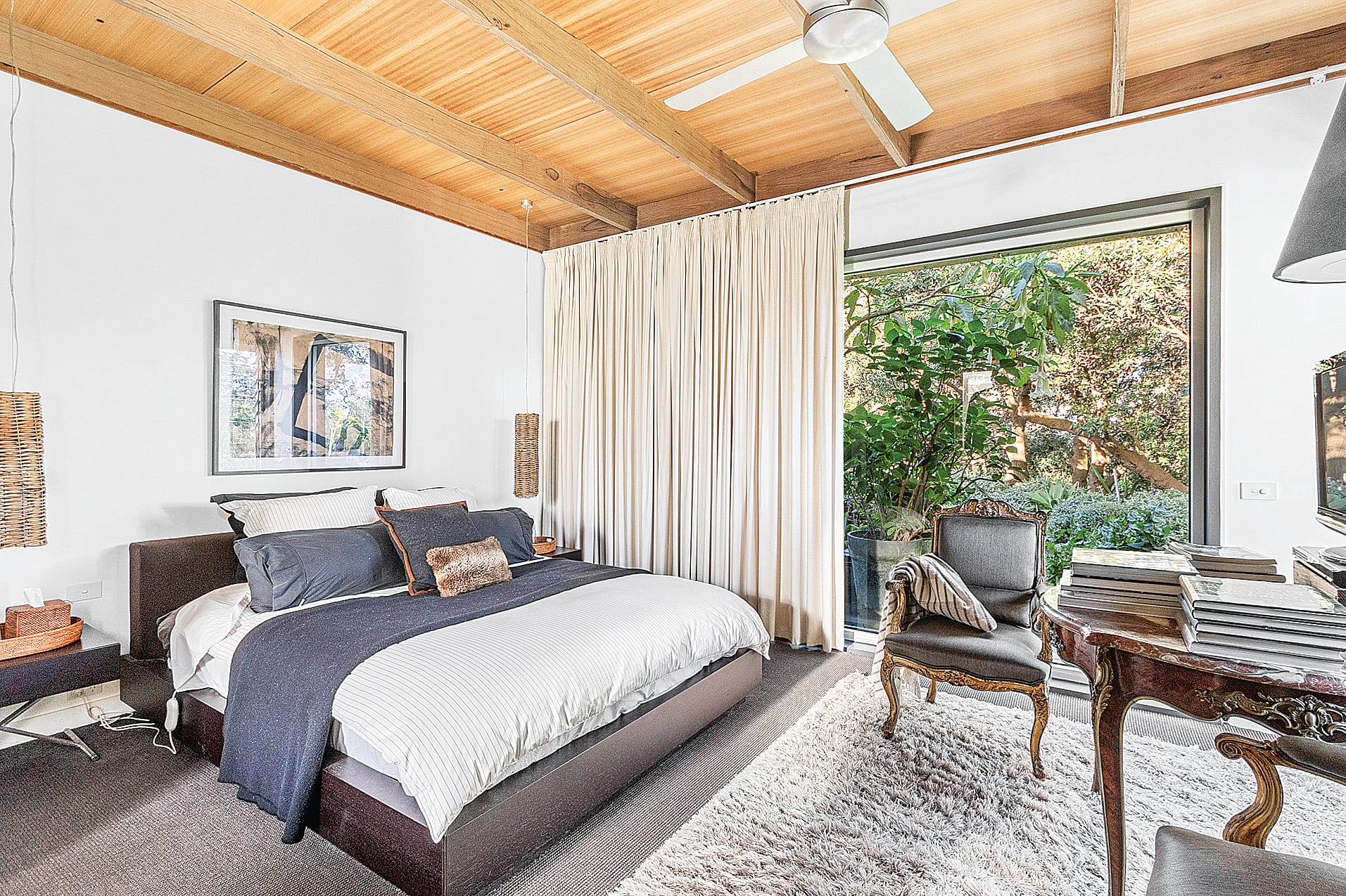The home features a ground floor master bedroom and bathroom that opens out through French doors to a private courtyard complete with a circular saltwater heated plunge pool.