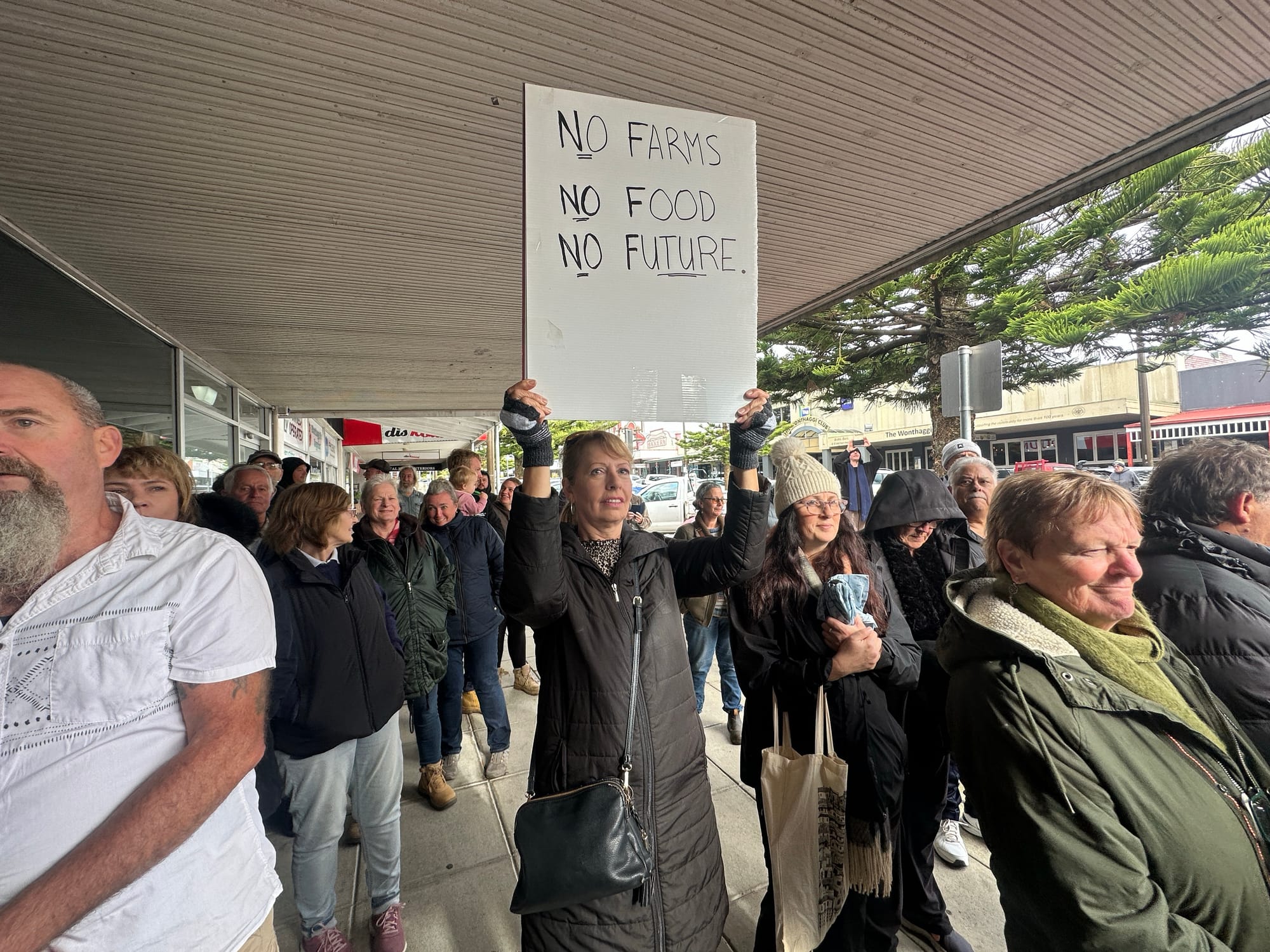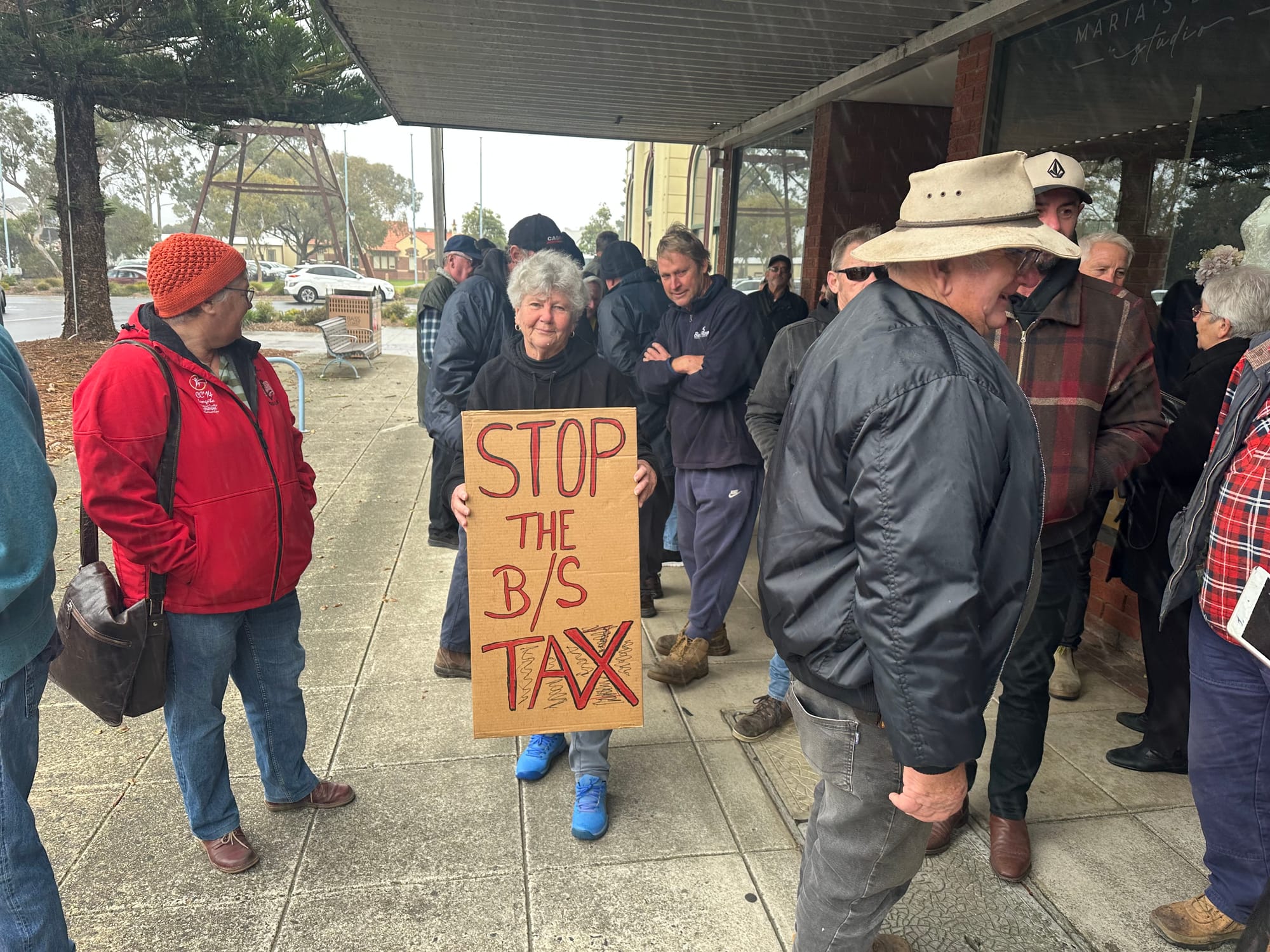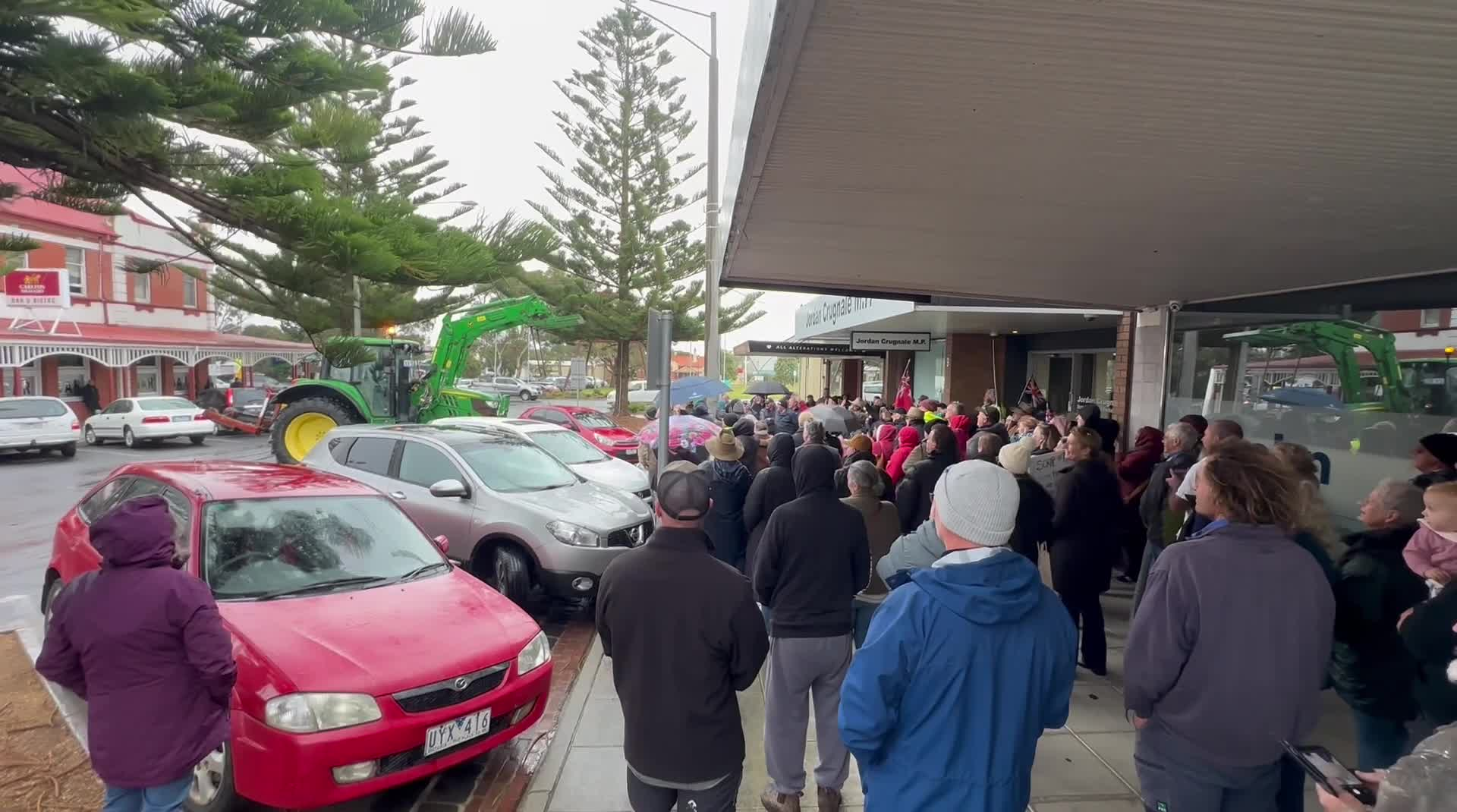 Together the crowd chanted "Axe the Tax," and Bass Coast locals spoke out about the impact the tax will have on farmers, business owners and the wider community.