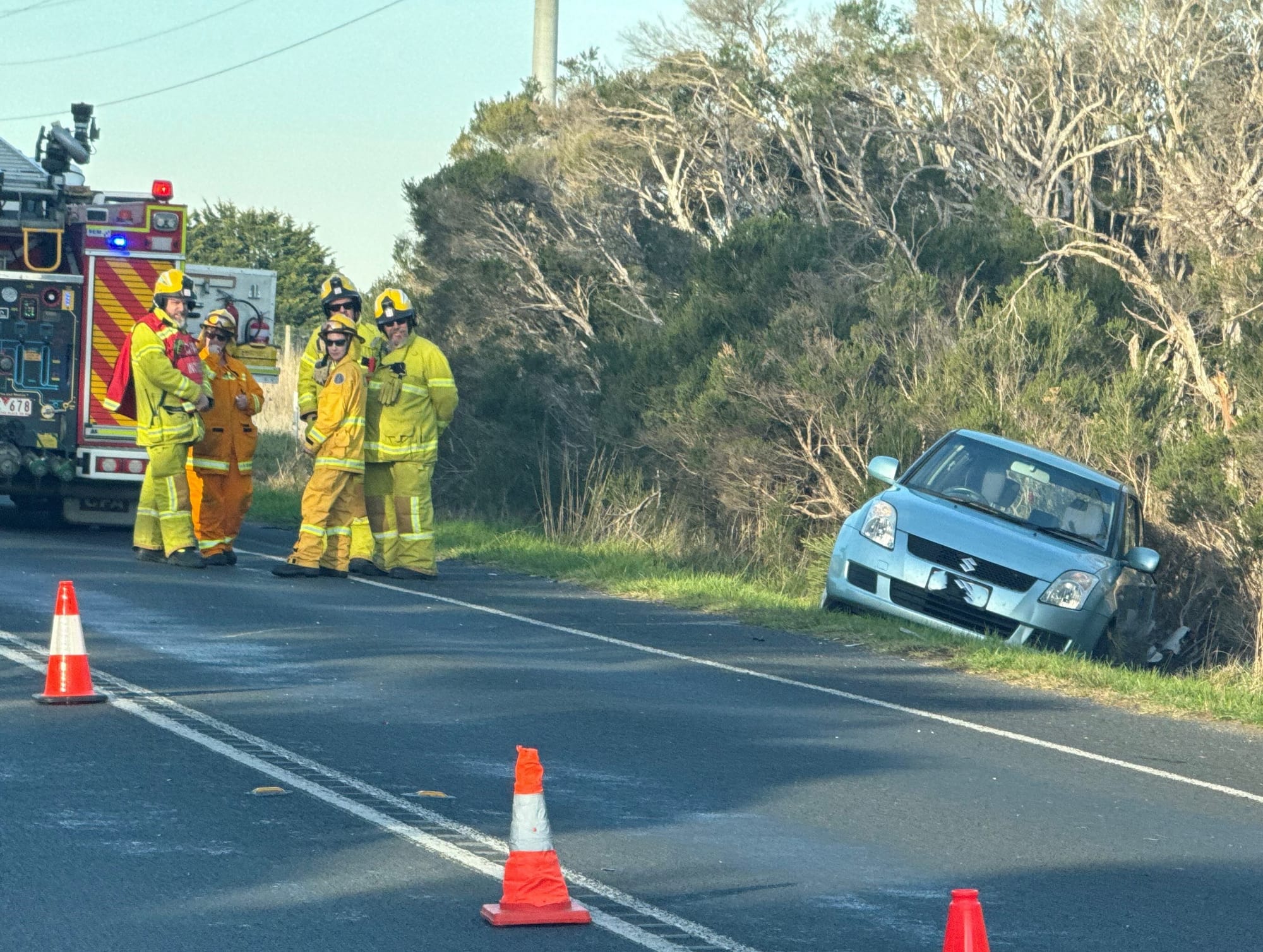 It's understood a car slowed to turn into a property along the highway with the two vehicles behind subsequently pulling out to go around the vehicle. The third vehicle has clipped the second vehicle causing it to flip and roll down the embankment.