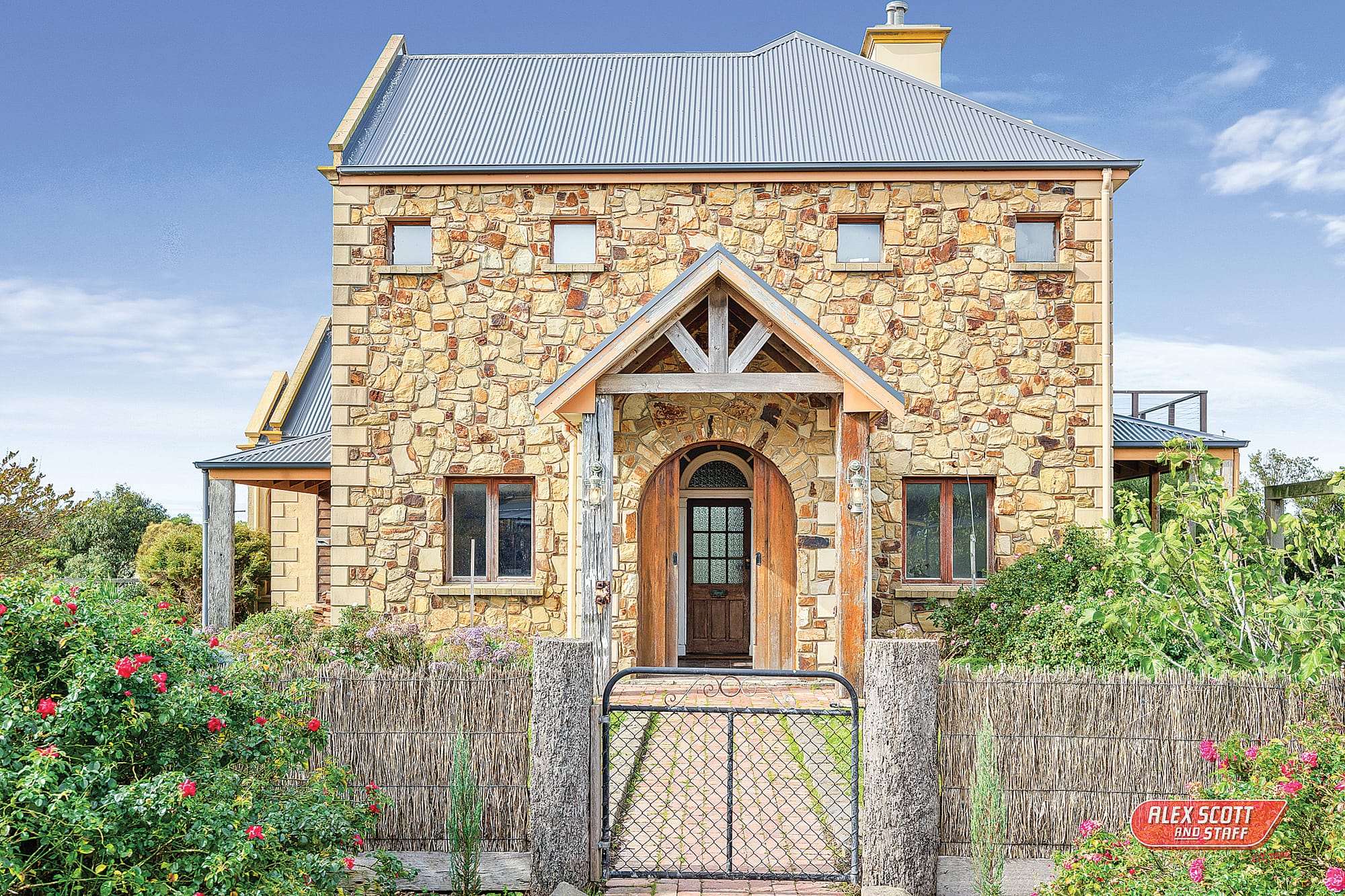 The architecture is striking with its high feature sandstone walls. Set over three levels the home takes in sweeping views of the property and coastal sand dunes to the south.