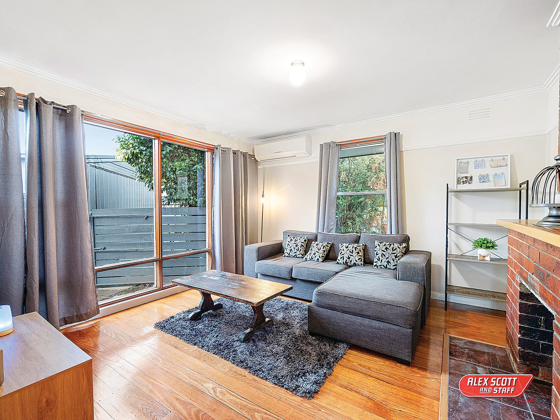 Adjacent to the kitchen is a cosy lounge area which features polished timber floors, an ornamental fireplace, split system air conditioner and windows to the front and side to gain natural light.
