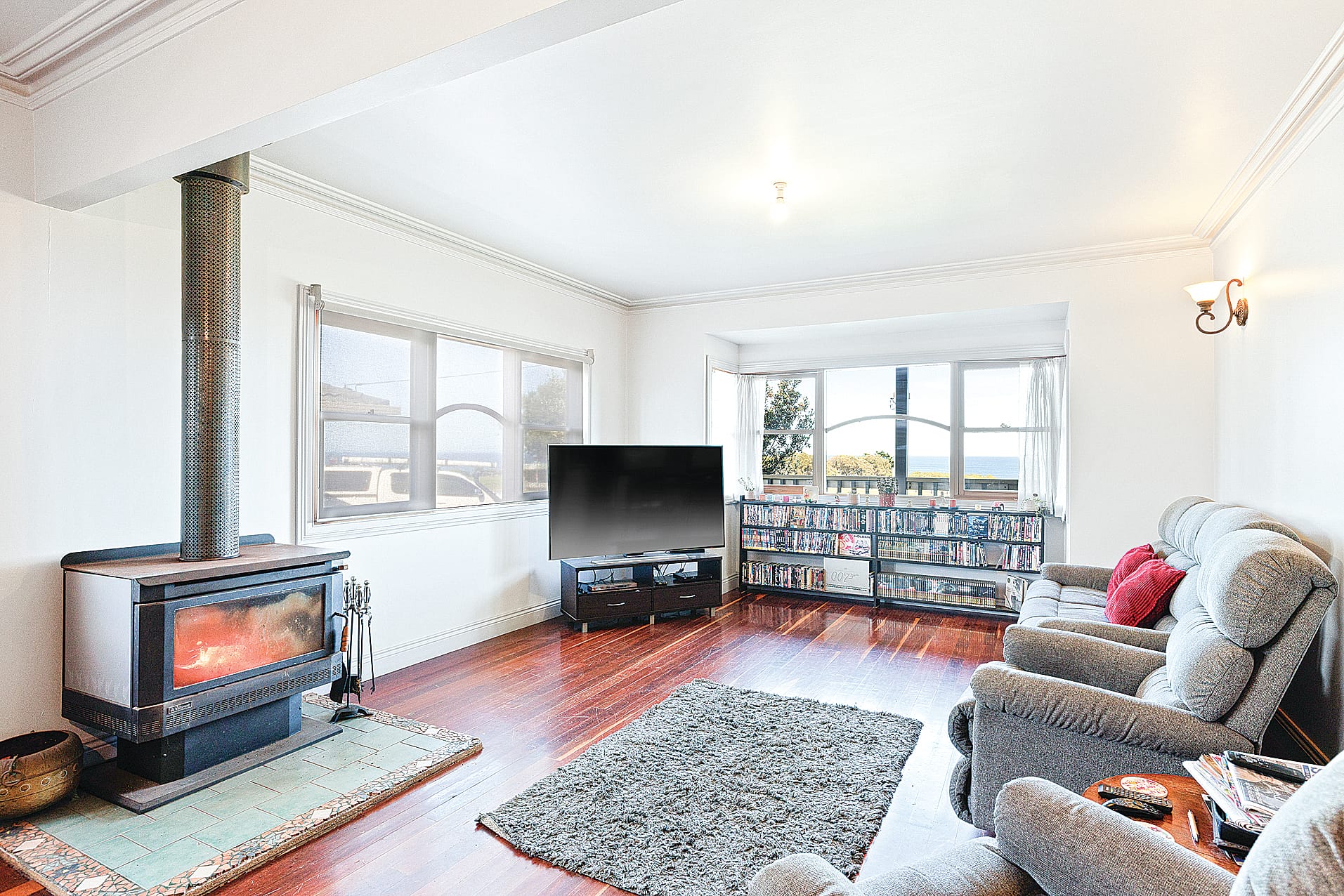 A wood heater and spectacular views will ease your mind as you unwind from your day in the lower living area. Aside from the main living space and kitchen, downstairs comprises of two bedrooms both with built in robes and a lavish bathroom including a clawfoot bath.