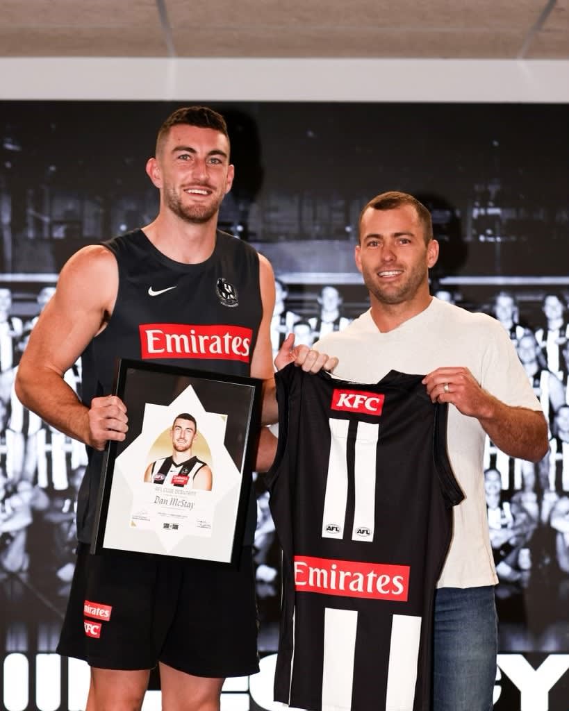 HEROIC Wonthaggi Power leader Jarryd Blair was invited back to the great Collingwood Football Club during the week to present two jumpers to two new players at the Magpies, experienced Brisbane recruit Daniel McStay, who was taking over his Number 11 guernsey, and the pacey former GWS forward Bobby Hill who received the Number 23.