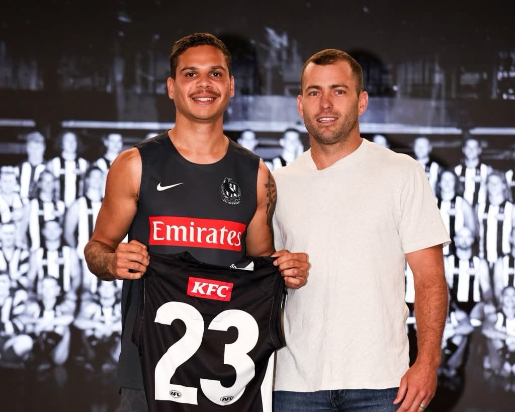 Blair was welcomed back into the fold by Collingwood coach Craig McRae and initially made light of his own career at the Pies before bringing it home with a strong message about coming to the club with the mindset of being a great team player as the ideal foundation for a successful career.