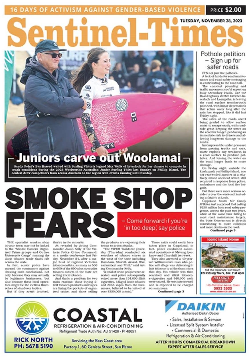Check it out in this week's paper: https://www. sgst. com. au/digital-editions/tuesday-november-28-2023 THE Victoria Police's LUNA and VIPER taskforces are active in South Gippsland today, Tuesday, November 28, continuing their investigations into...
