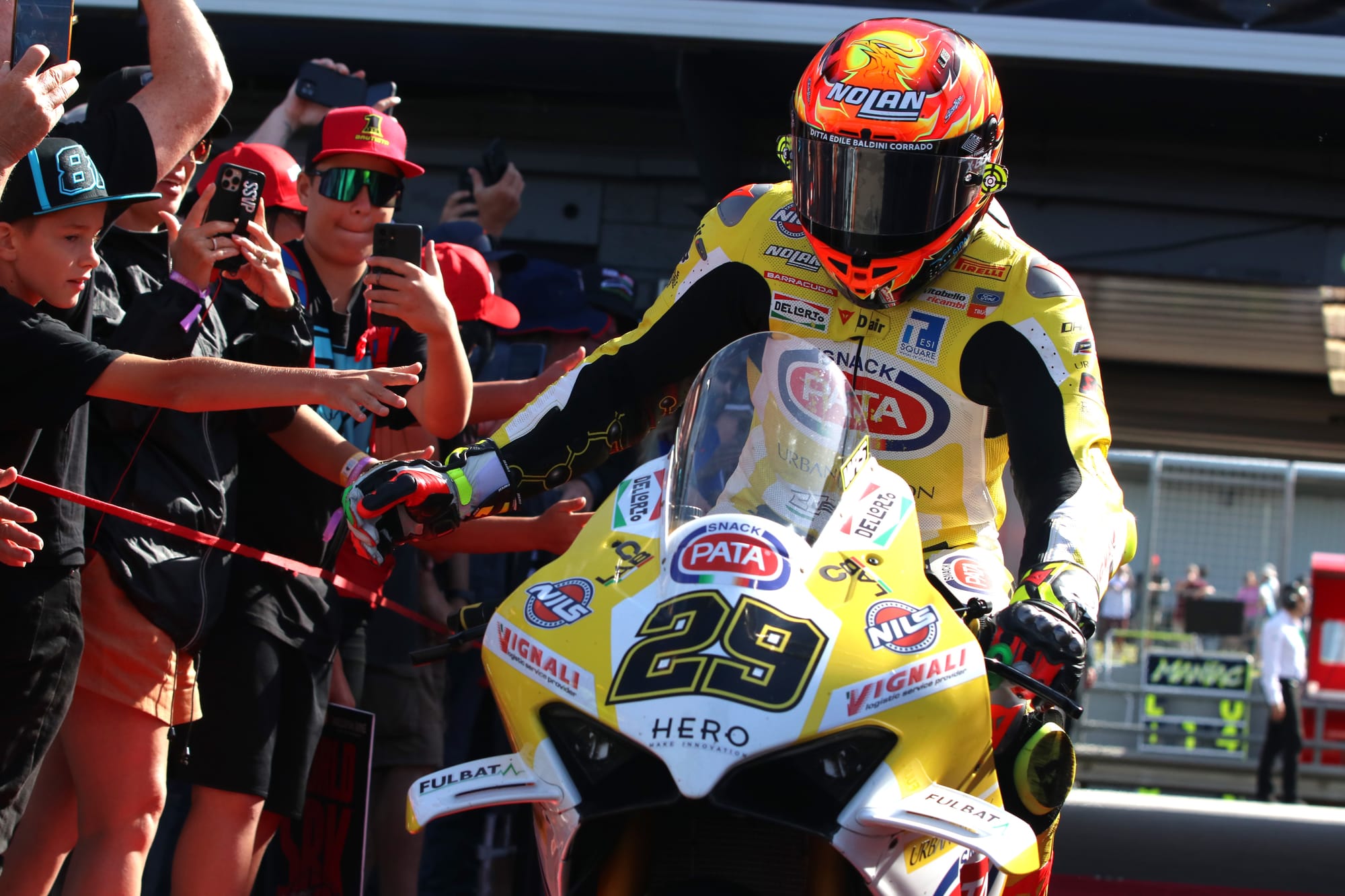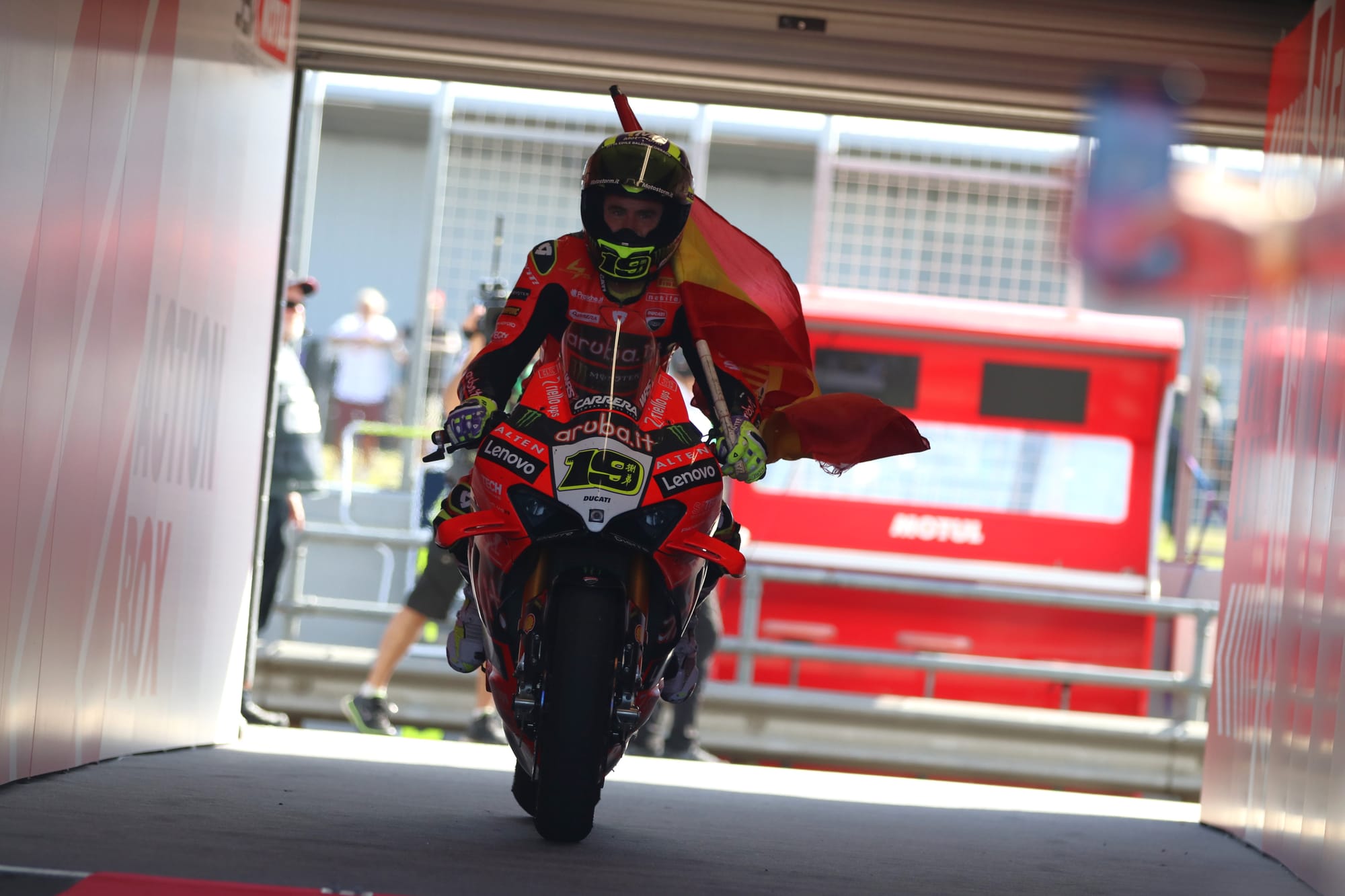 The race also saw a historic Ducati dominance, with the top six positions occupied by the Italian manufacturer: Bulega, Bautista, Iannone, Redding, Petrucci, and Lowes. Andrea Locatelli was the best non-Ducati finisher, taking seventh place aboard his Yamaha YZF-R1.