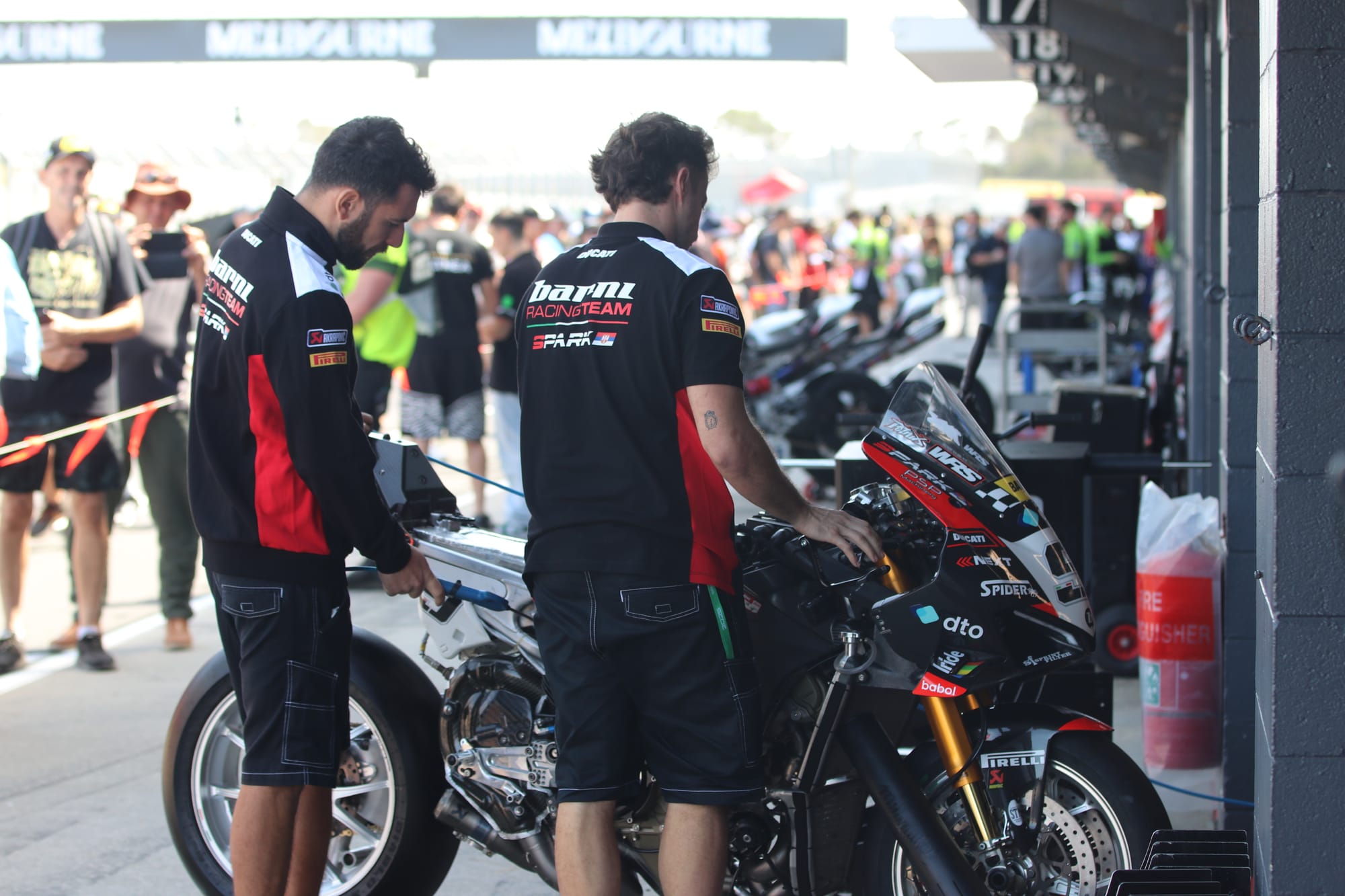 Iannone, Bautista, Redding, Petrucci, both Lowes brothers, and Axel Bassani were the first to pit, while Bulega, Razgatlioglu, Yari Montella, Andrea Locatelli, and Dominique Aegerter stayed out an extra lap. Rookie WorldSBK rider Ryan Vickers opted for the maximum allocated time on track before pitting last.