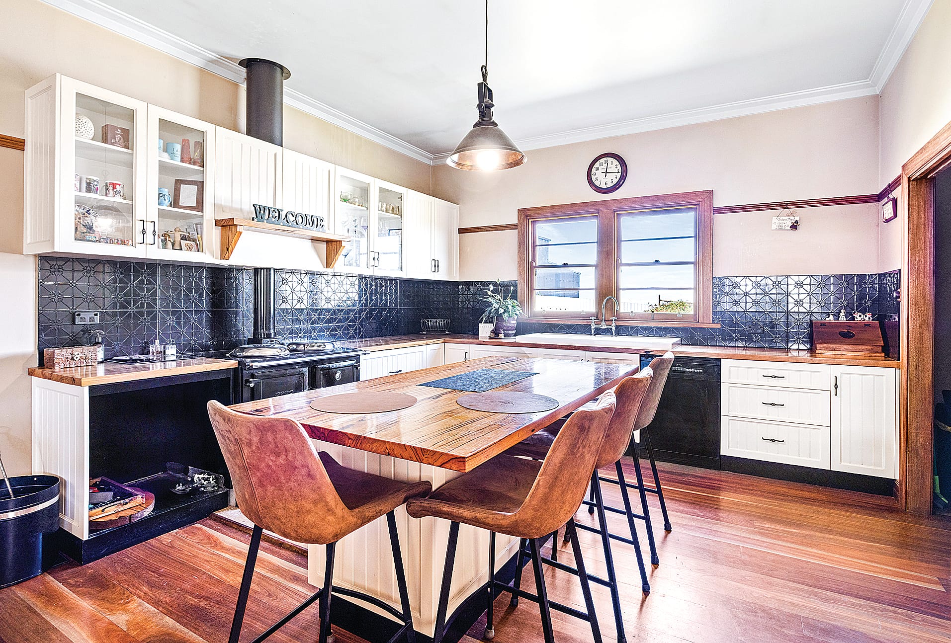 A country style home consists of three-bedrooms, two-bathrooms and has been beautifully renovated to its former glory with views from every room. The spacious kitchen features a ‘Esse’ wood fire stove, dishwasher, large island bench and ample storage with a walk-in pantry. A central bathroom features a ‘claw foot’ bath, large walk-in shower, vanity and toilet, and combines stunning features of brick and pressed metal.