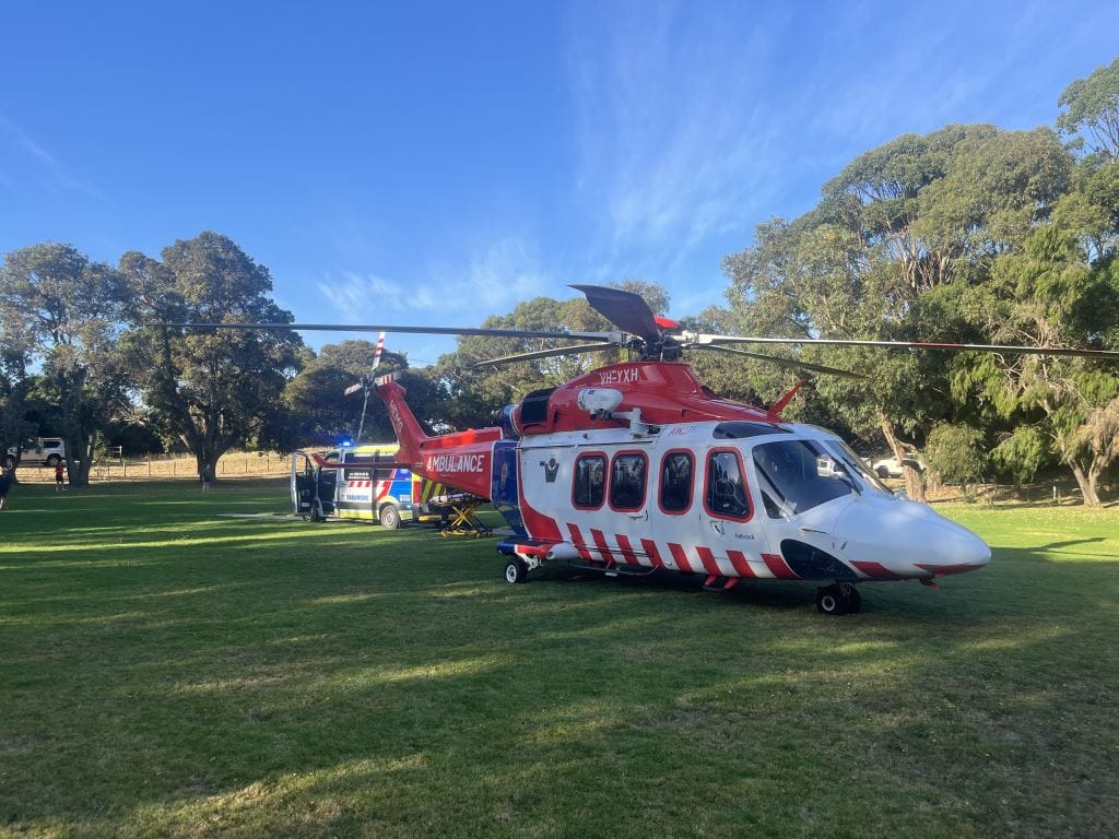 A MICA ambulance attended a residential address in the eastern part of Cape Paterson and, after a period of treatment, transported a male patient in his 70s to Cape Paterson’s Park Parade Reserve oval where the helicopter was waiting.
