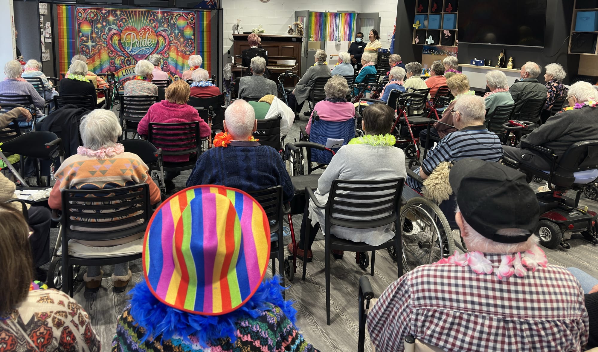 Residents and staff alike were adorned in colourful leis and rainbow hats and rainbow outfits in celebration and support of Pride Month, which runs across June each year.