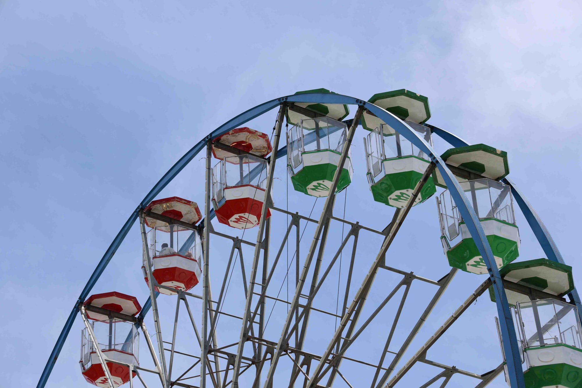 The ferris wheel’s last big engagement was at the EKKA in Brisbane, their equivalent of the Melbourne Royal Show, where it’s capacity of 120 people (six to a cabin) was rarely tested, after that the Gold Coast.