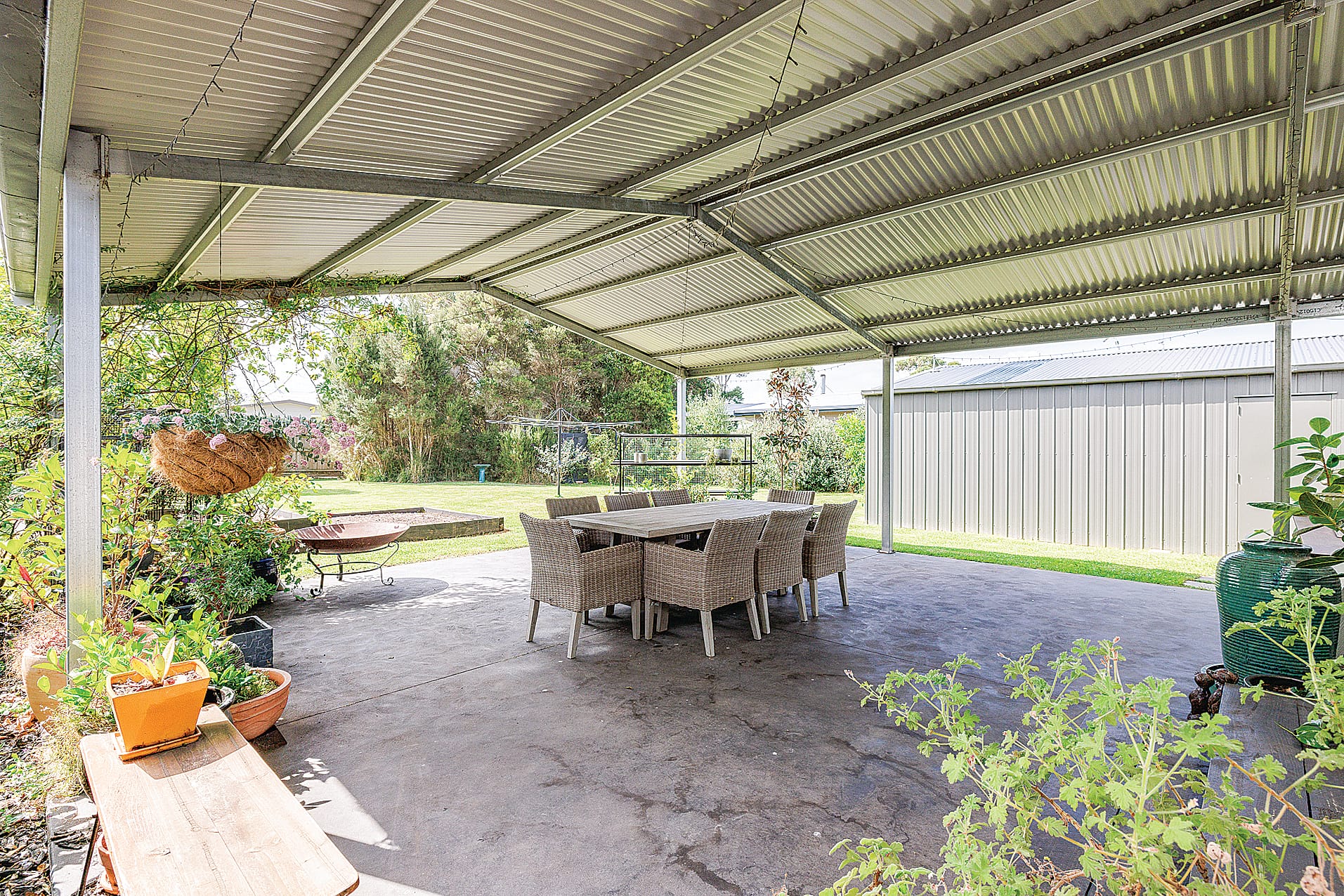 To the rear there is a massive covered outside living space overlooking the generous rear garden and access to double garage/workshop that adjoins the double carport at end of driveway.