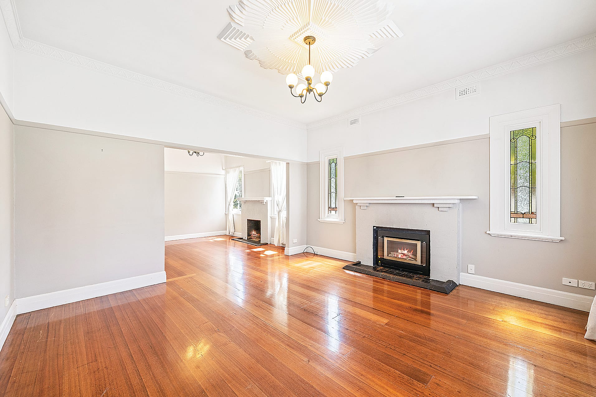 The home boasts three good sized bedrooms and two bathrooms. A colonial-style kitchen is equipped with an electric stove, dishwasher and plenty of cupboard space. The front lounge features a gas log heater and ample natural light. A formal dining room includes an ornamental fireplace. Hardwood timber floors and ornate ceilings add charm.