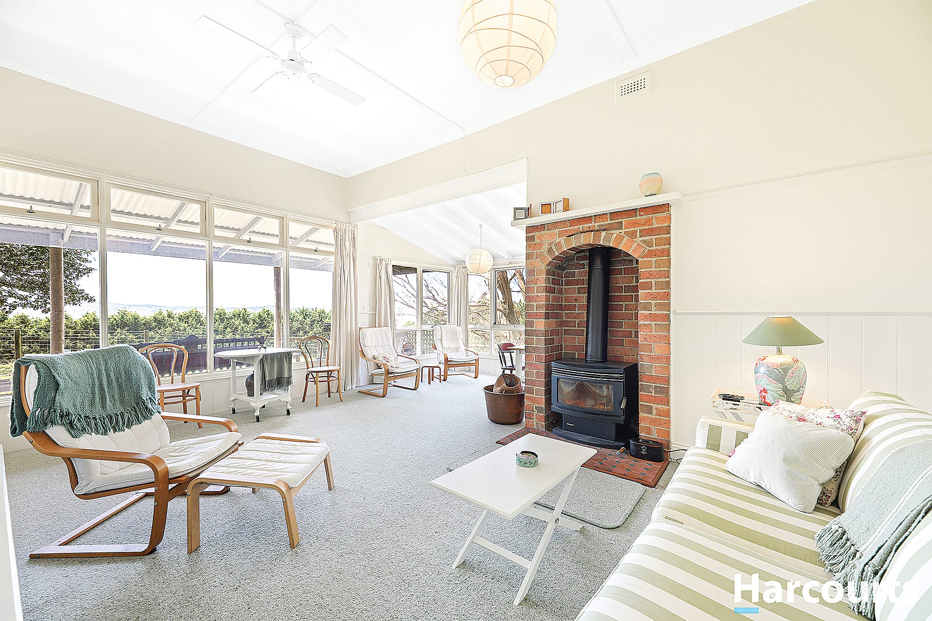 Cozy Sunroom Retreat: At the rear of the home, a cozy sunroom/dining area beckons with its warmth and comfort. Featuring a reverse cycle air-conditioner, red carpet, and a raked timber-lined ceiling, this space is perfect for relaxation and enjoyment. Take in breathtaking rural views by day and marvel at the twinkling lights of Leongatha by night through the telescope. Perfect place for bird watching