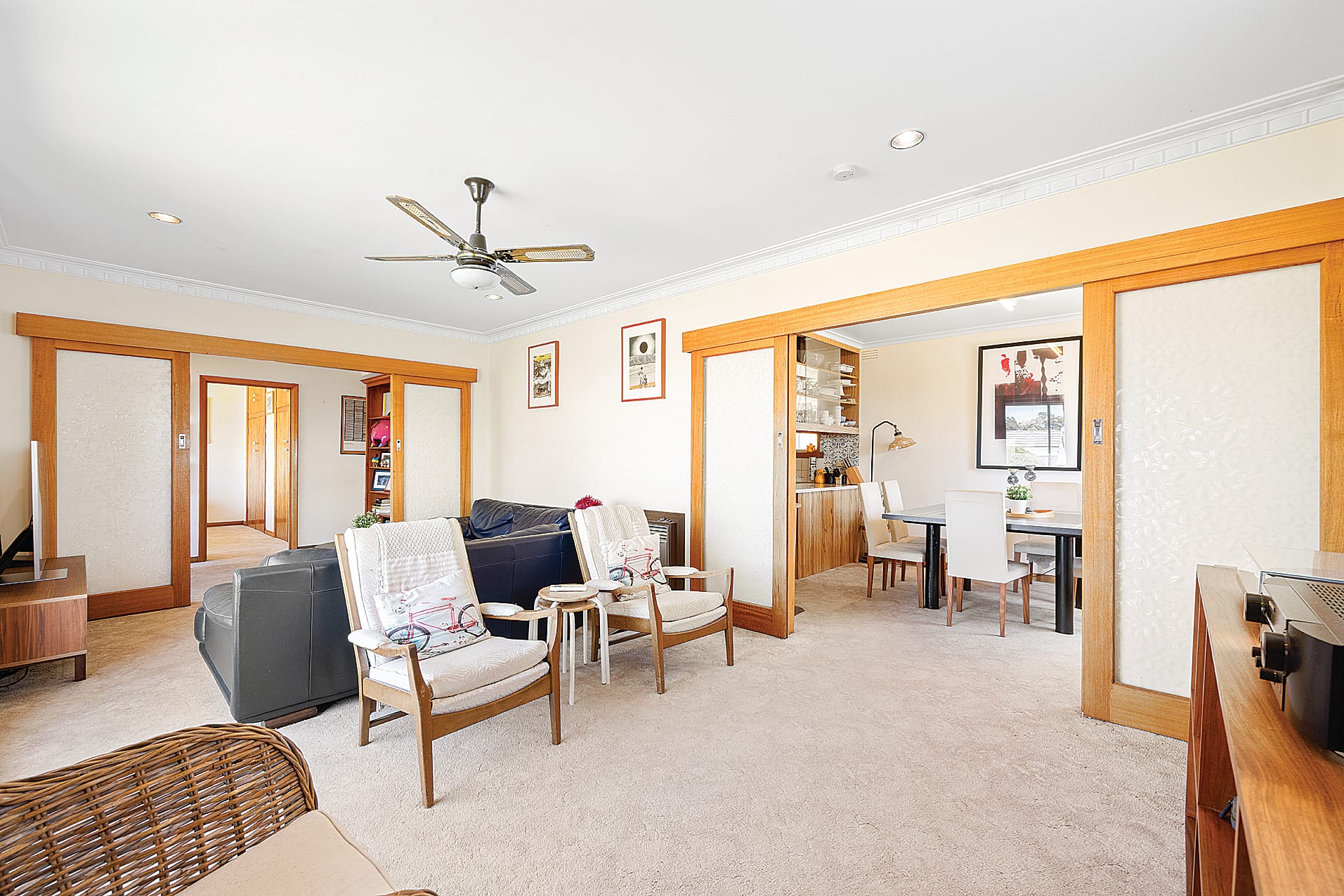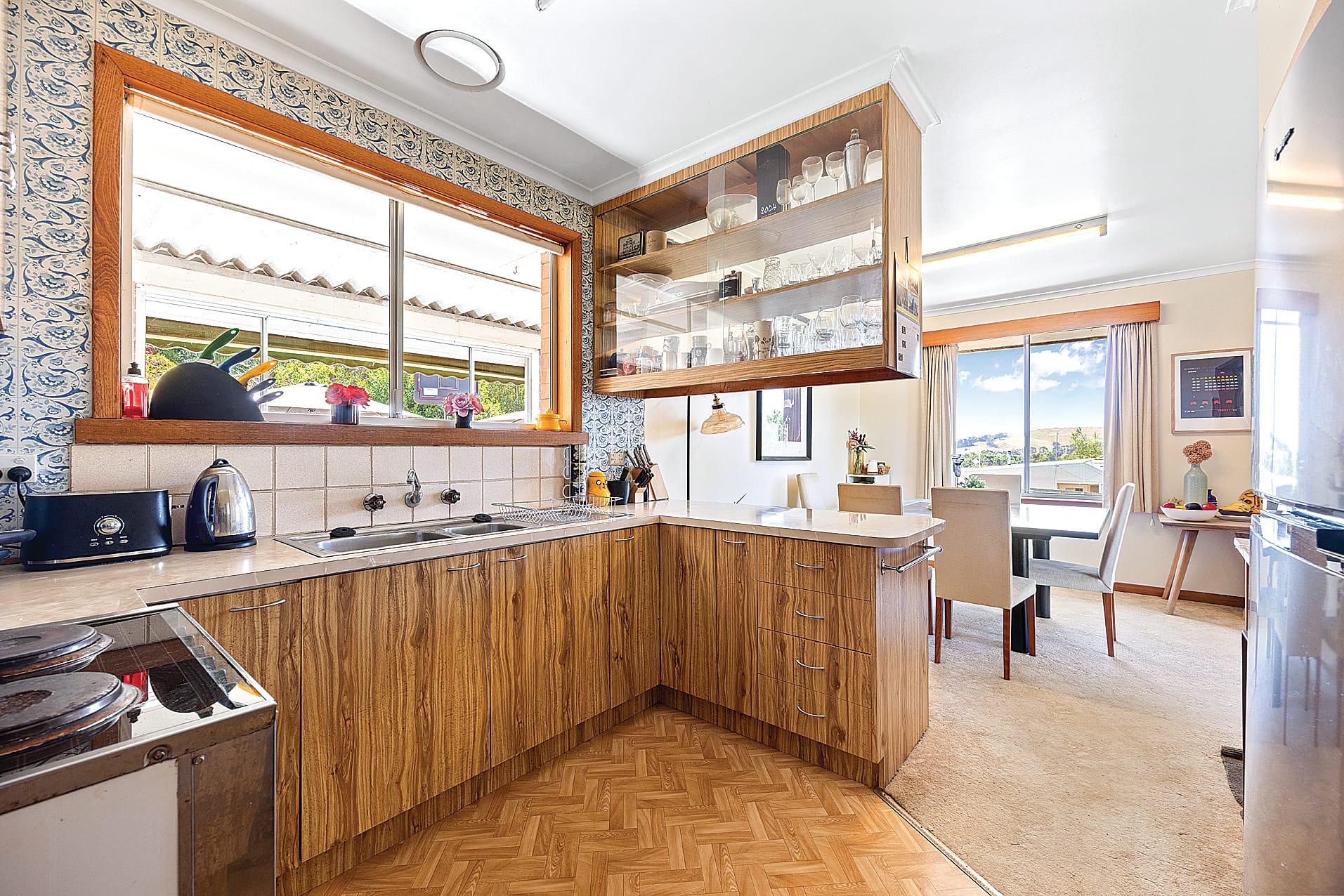 A functional kitchen includes an electric stove, ample storage, and flows seamlessly into the dining area. A split system reverse cycle in the living area provides for heating and cooling always ensuring a comfortable climate. The 3kW solar system feeds into the grid, making the property very energy efficient.