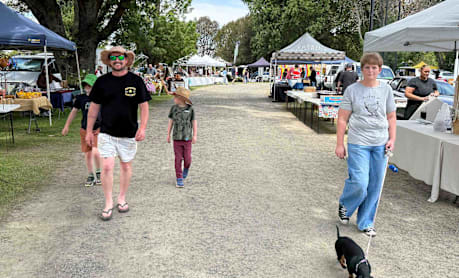 The Oxley family of Fish Creek, including Daisy the Dachshund, who couldn’t be left in a hot car, enjoyed the shady trees at the Foster Showgrounds during a warm start to the summer Prom Produce and Craft Market season on Sunday. oster2_4425...