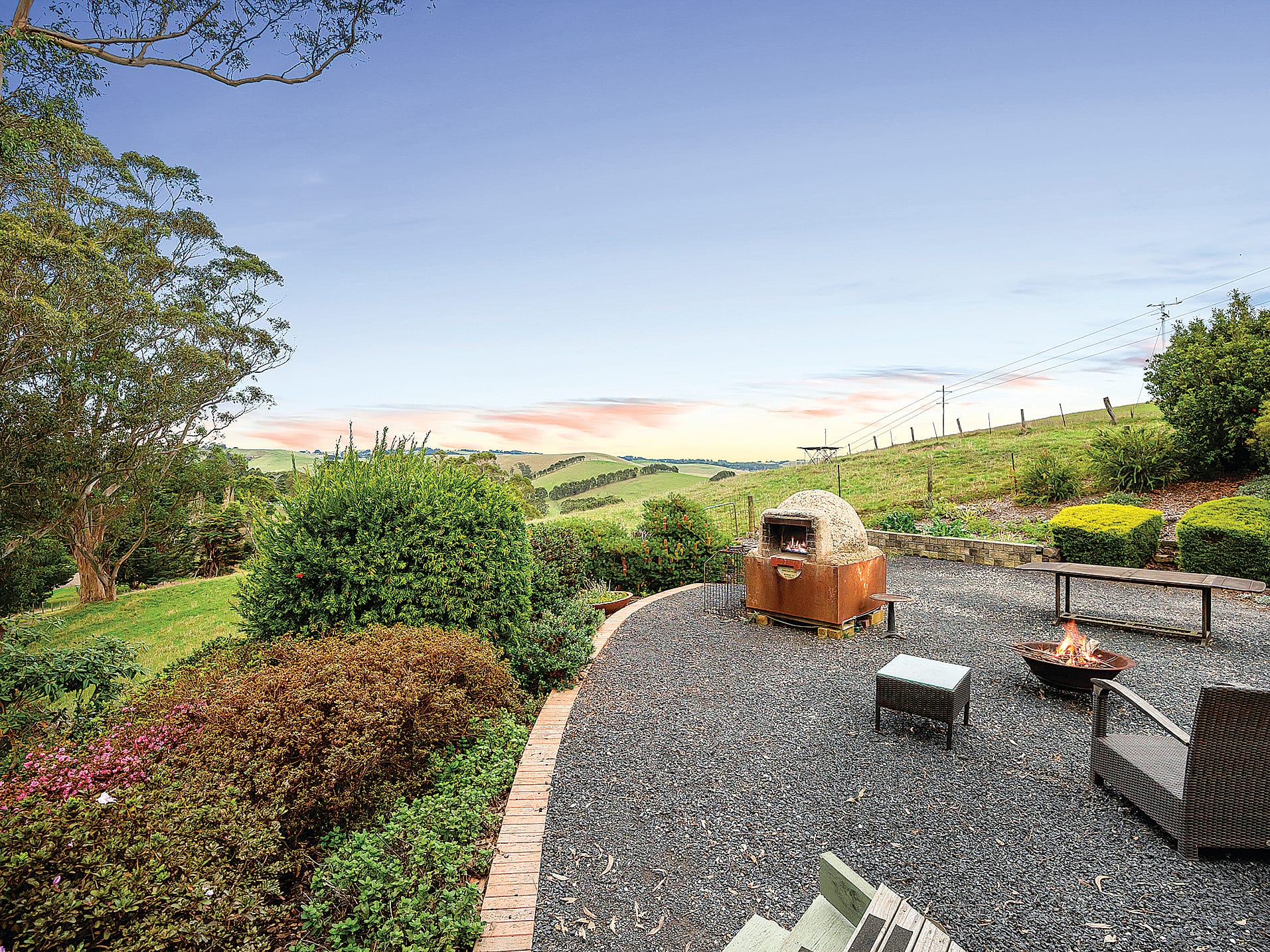 A long veranda is just the spot to sit back and watch the ever-changing vista and there is an extensive covered outdoor entertaining area, complete with a pizza oven.