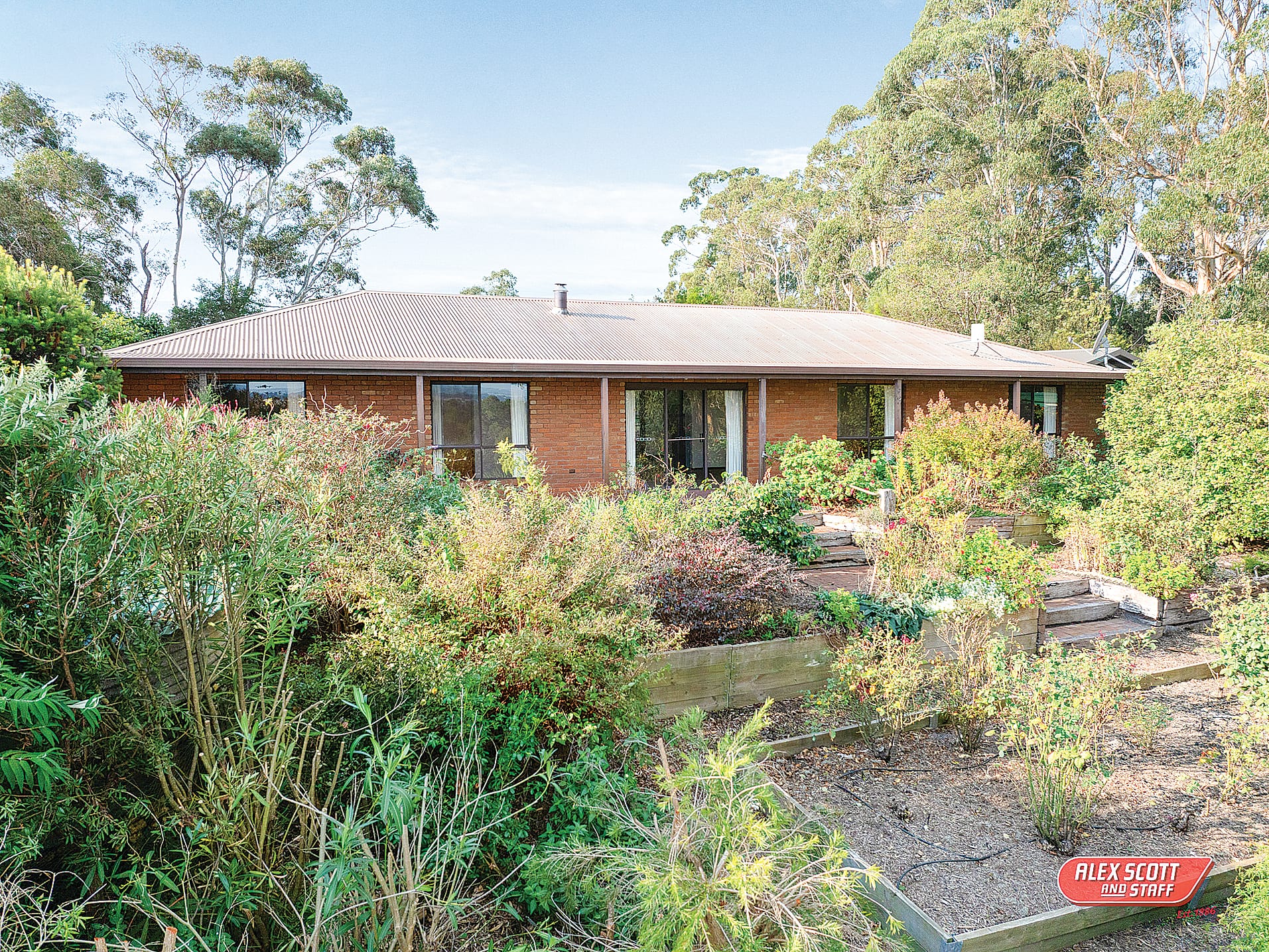 • Mature gum trees and landscaped gardens with sprinkler system