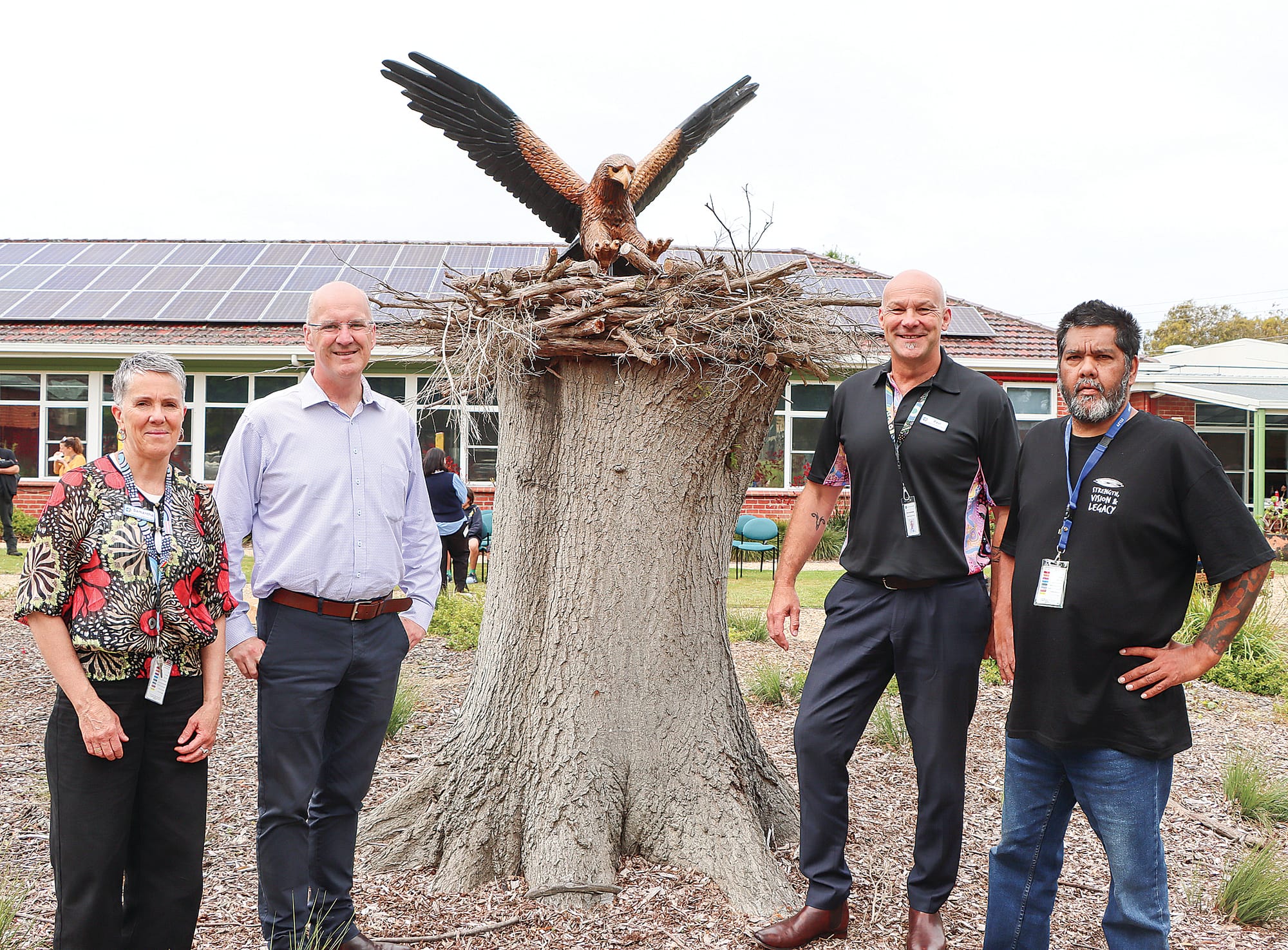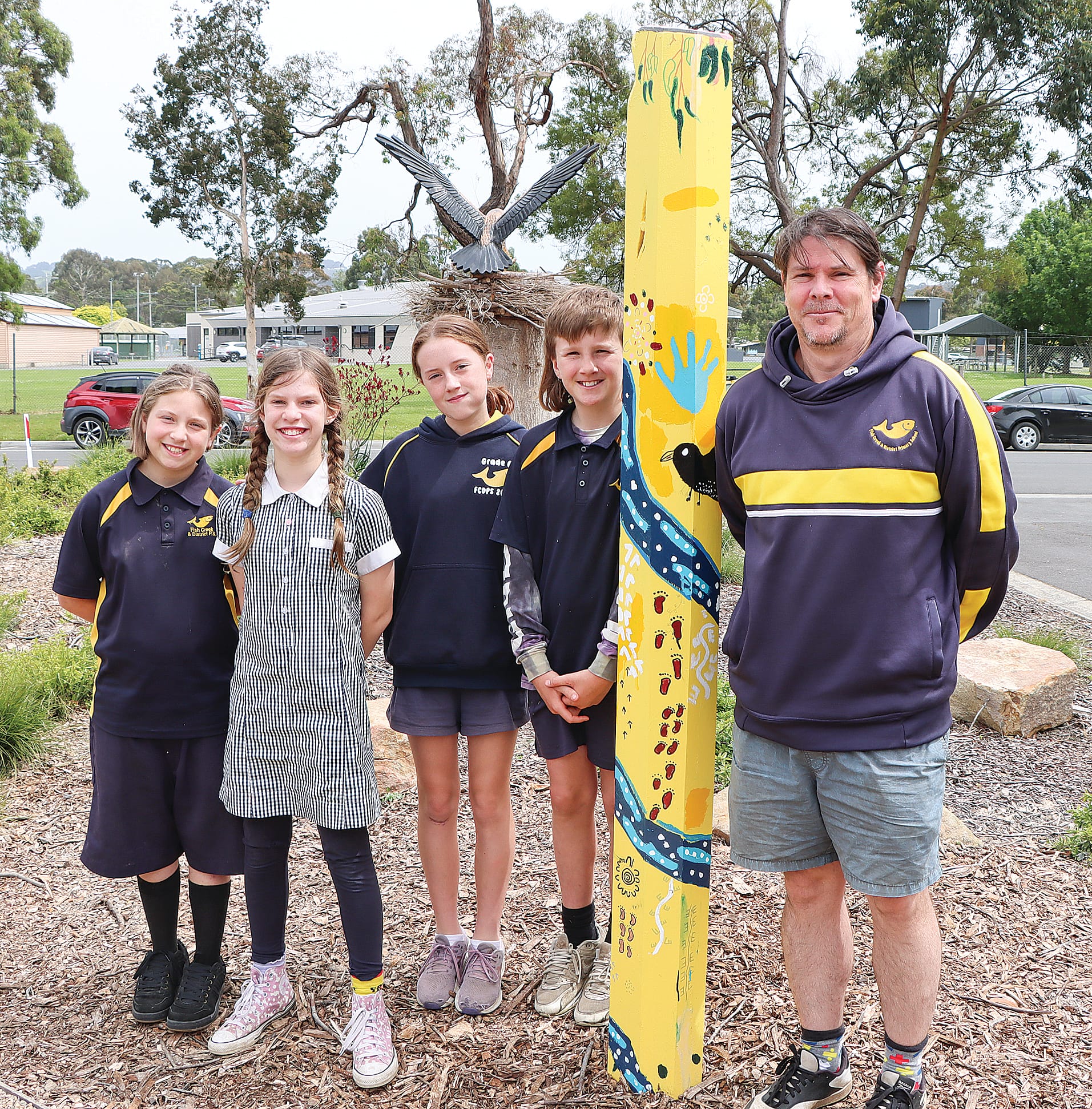 Wednesday’s event served a dual purpose, acknowledging the completion of four totem poles, each painted by students from a different local school, as well as a spectacular sculpture of Bunjil the wedge-tailed eagle by Leongatha-based chainsaw artist Andrew Noble.