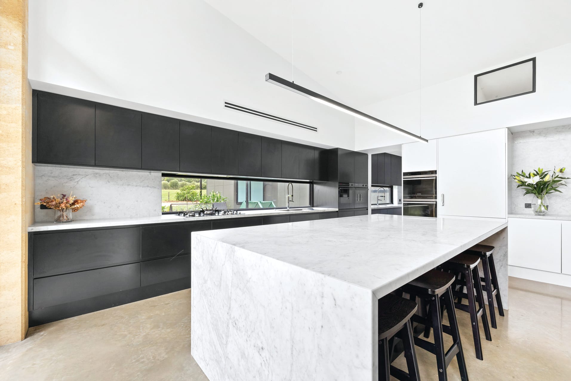 The house is kept comfortable throughout the four seasons by ducted heating and cooling and hydronic heating in the slab.
